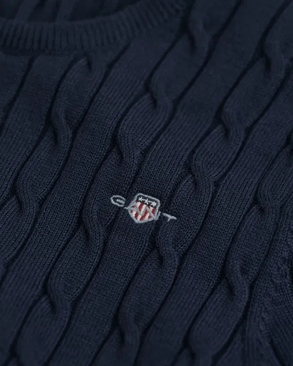 En amerikansk sportsklassiker – nå tilgjengelig for tenåringsjenter. Laget av en myk bomulls-elastanblanding for en slank, men elastisk passform, er vår kabelstrikkede genser skarp og allsidig. Designdetaljer inkluderer rund hals, ribbede avslutninger, skrå skuldre og vår ikoniske GANT-skjoldgrafikk brodert på brystet for et subtilt merkepreg.