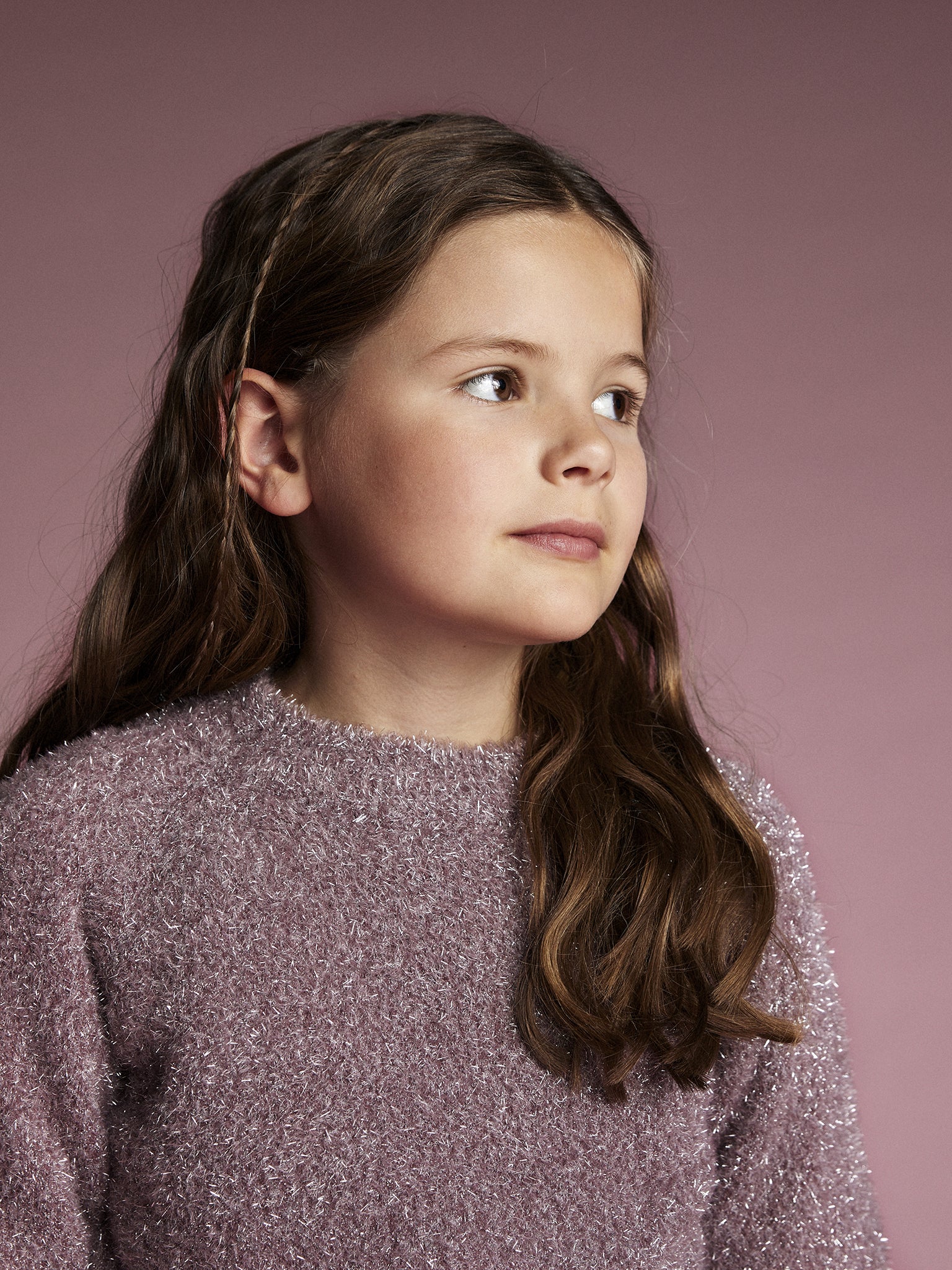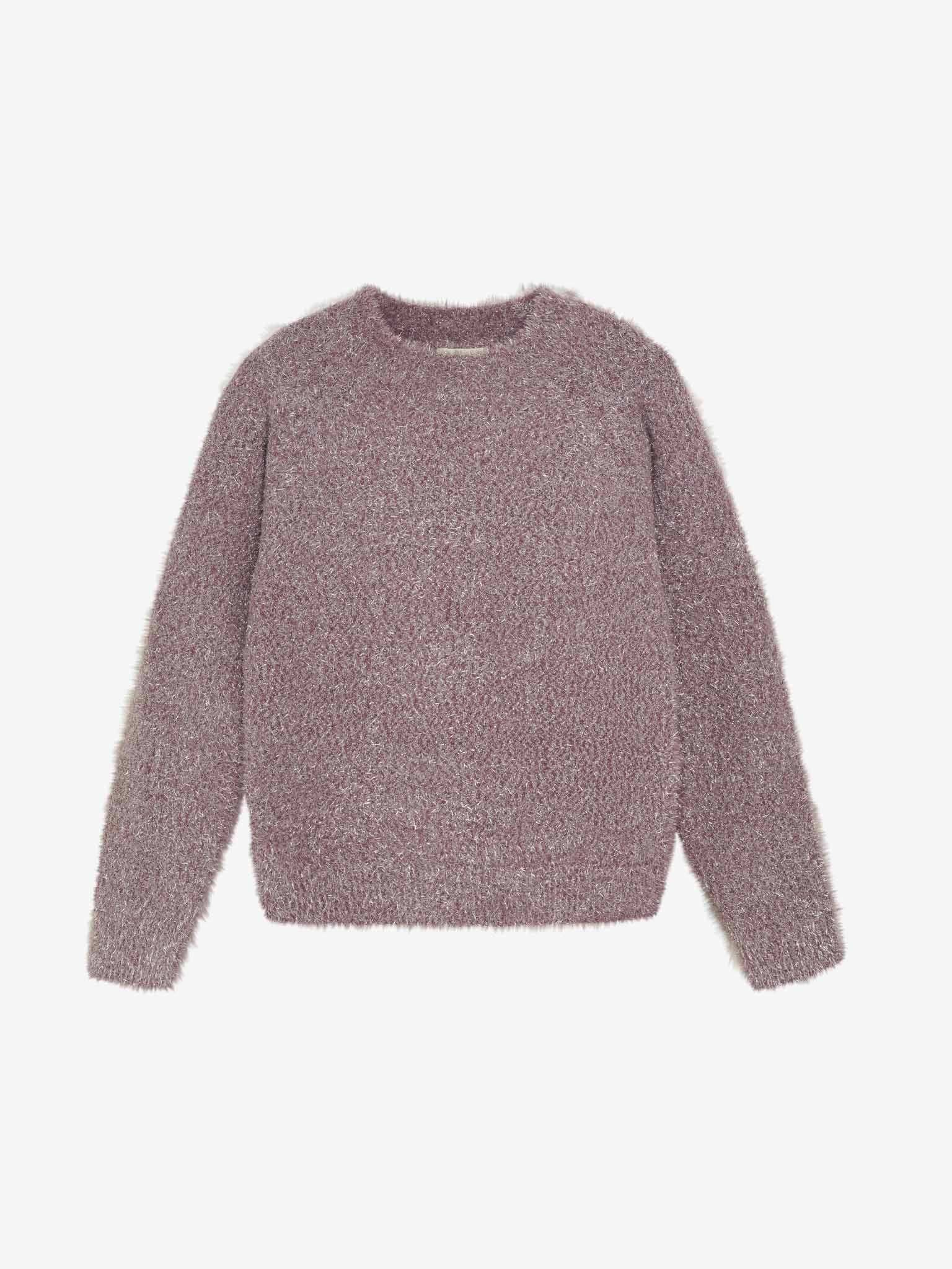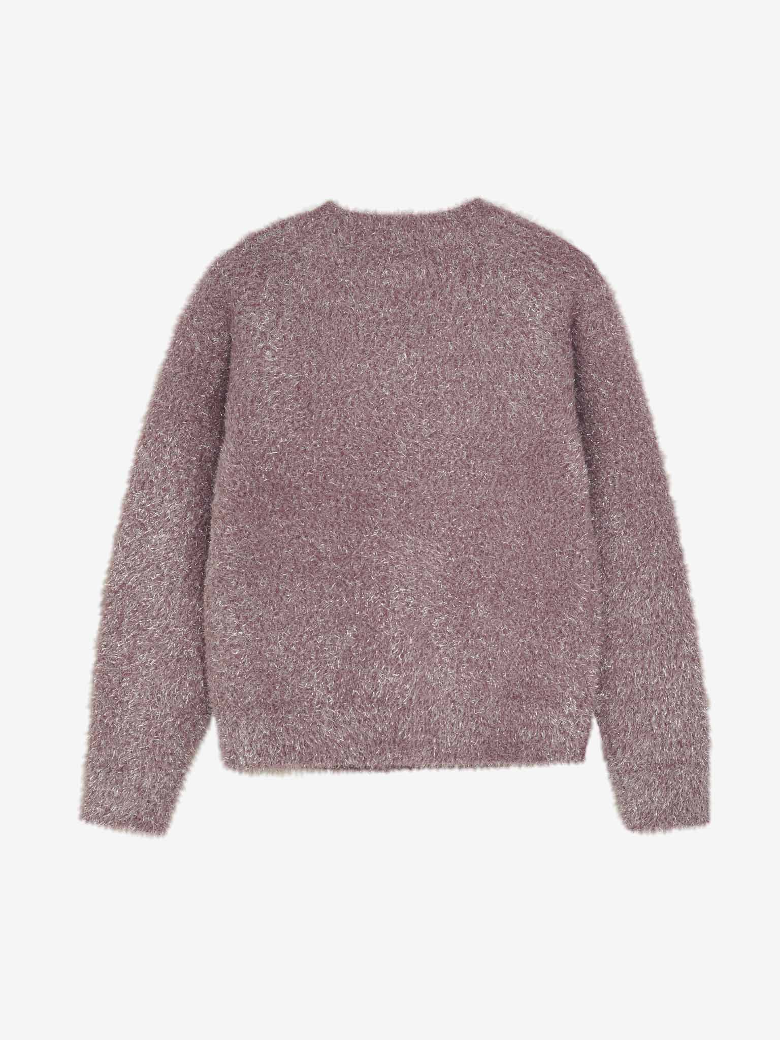 Nydelig myk strikkebluse fra Creamie med sølvtråder i garnet. Blusen har rund hals og ribbekanter i alle åpninger.