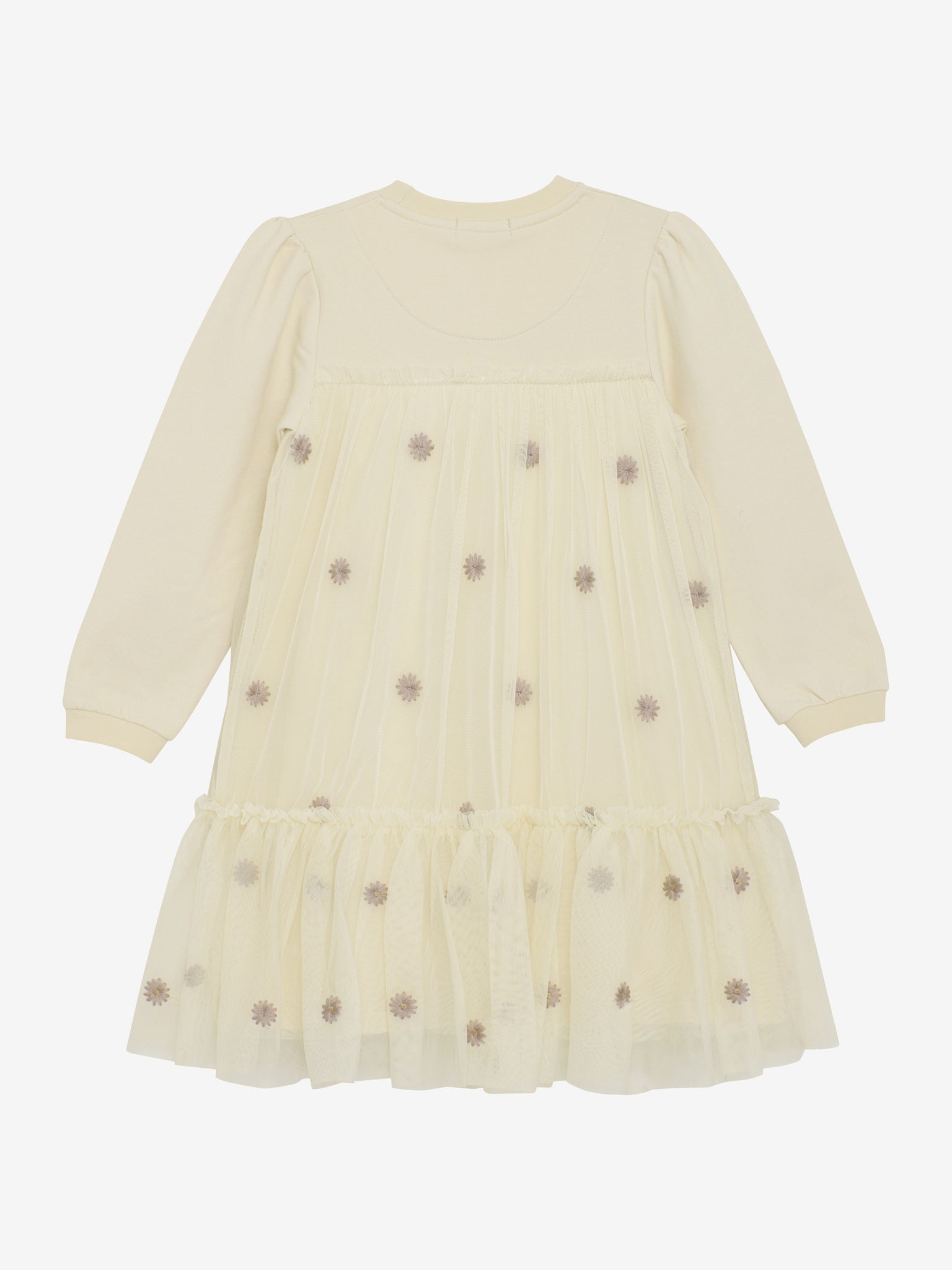 Smart tylkjole fra HUTTEliHUT. Kjolen er i en ens farve med fine detaljer p� tyldelen. Foroven er den i sweat kvalitet med rund hals og rib i hals�bning og �rmerne. Tylsk�rtet falder fra under brystet og der er syet et ekstra stykke p� forneden for at give masser af fylde. Certificeret i hht. OEKO-TEX� STANDARD 100 Cert. No. 2276-364 DTI