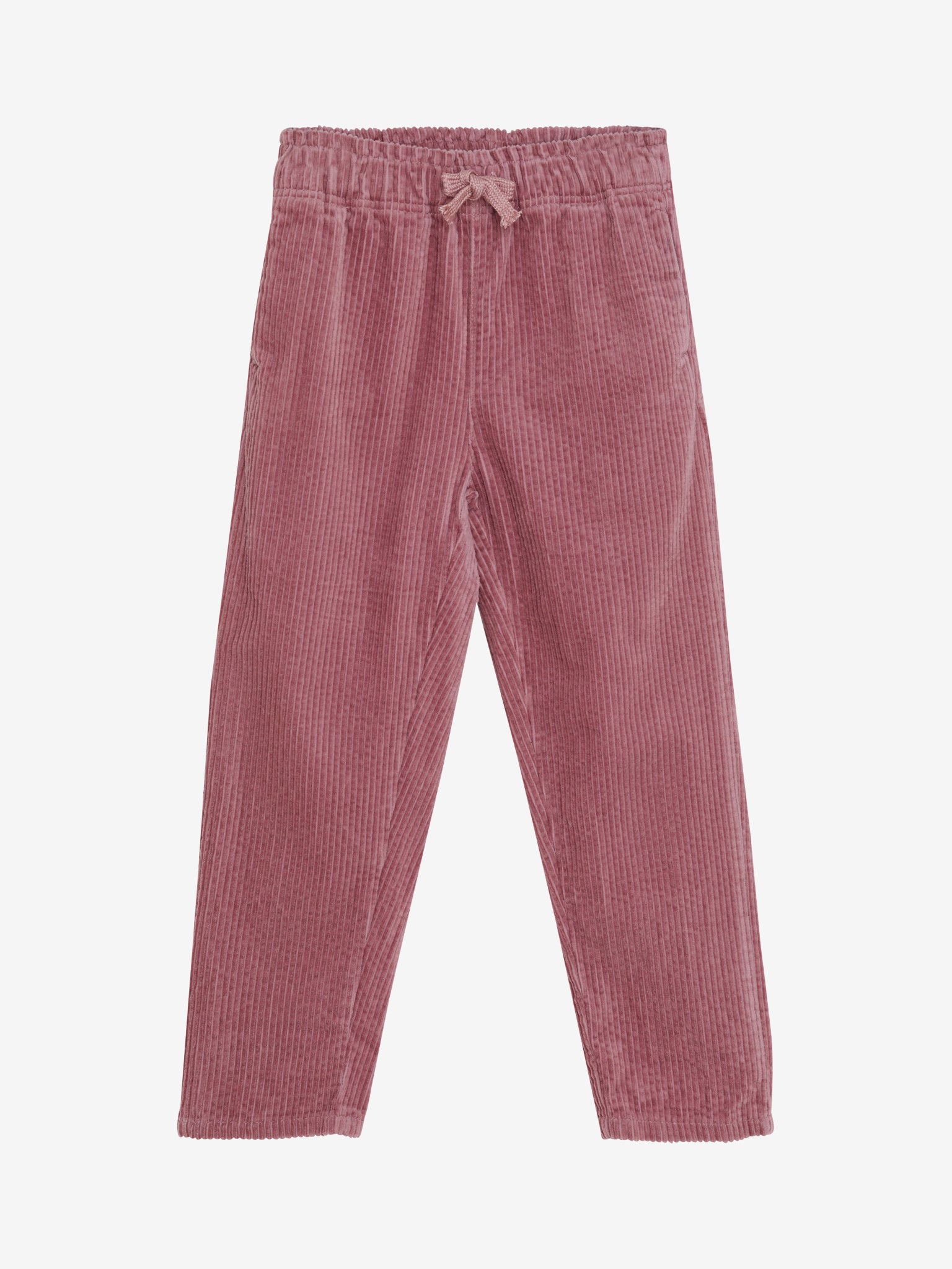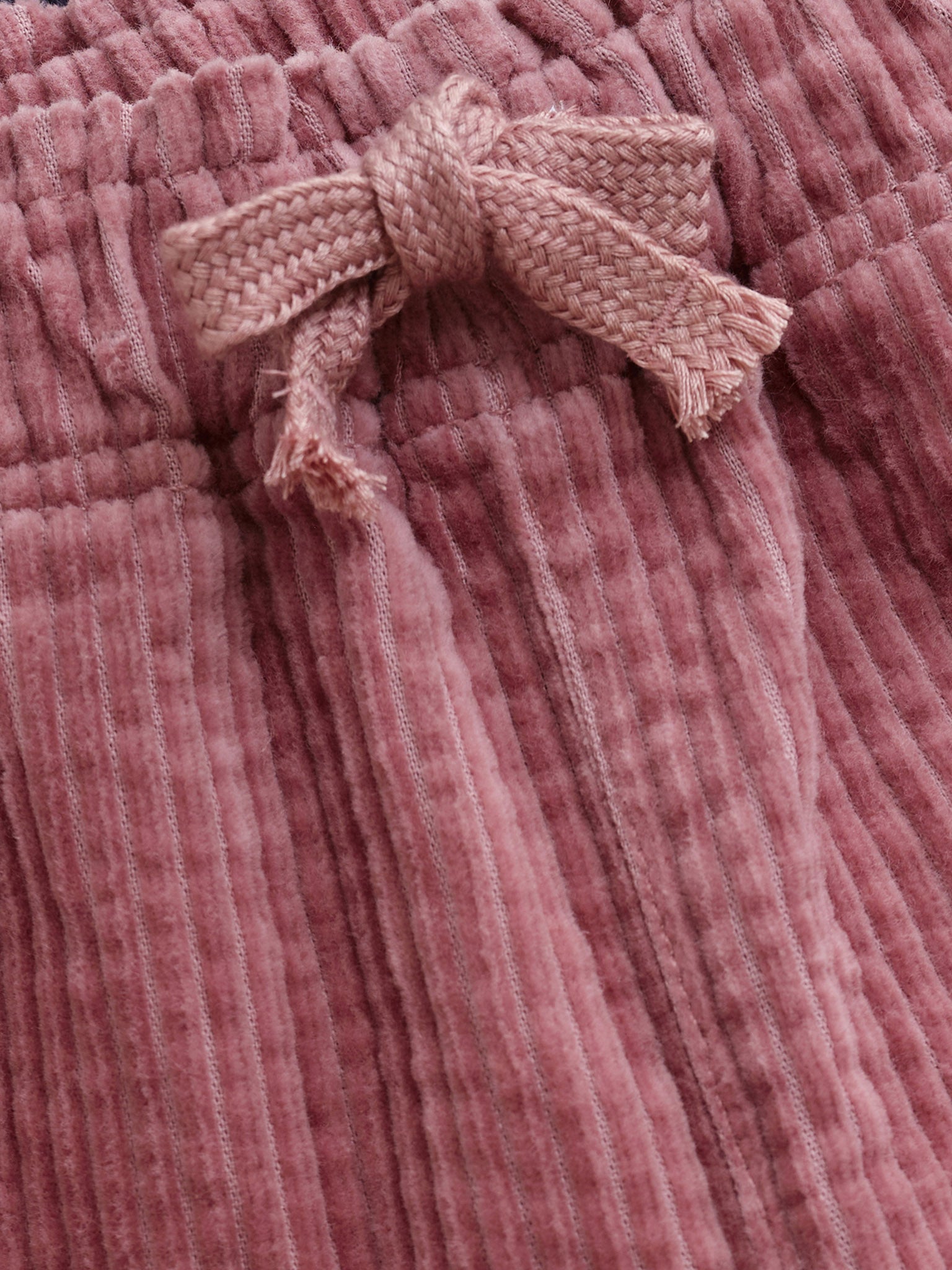 Unike bukser fra Minymo. Buksene er laget av 100 % økologisk bomull, noe som sikrer høy komfort hele dagen. Det er en fin detalj i form av en sløyfe i midjen, samt vertikale linjer på buksene. Det unike designet gjør disse buksene ideelle for både hverdagsbruk og spesielle anledninger.