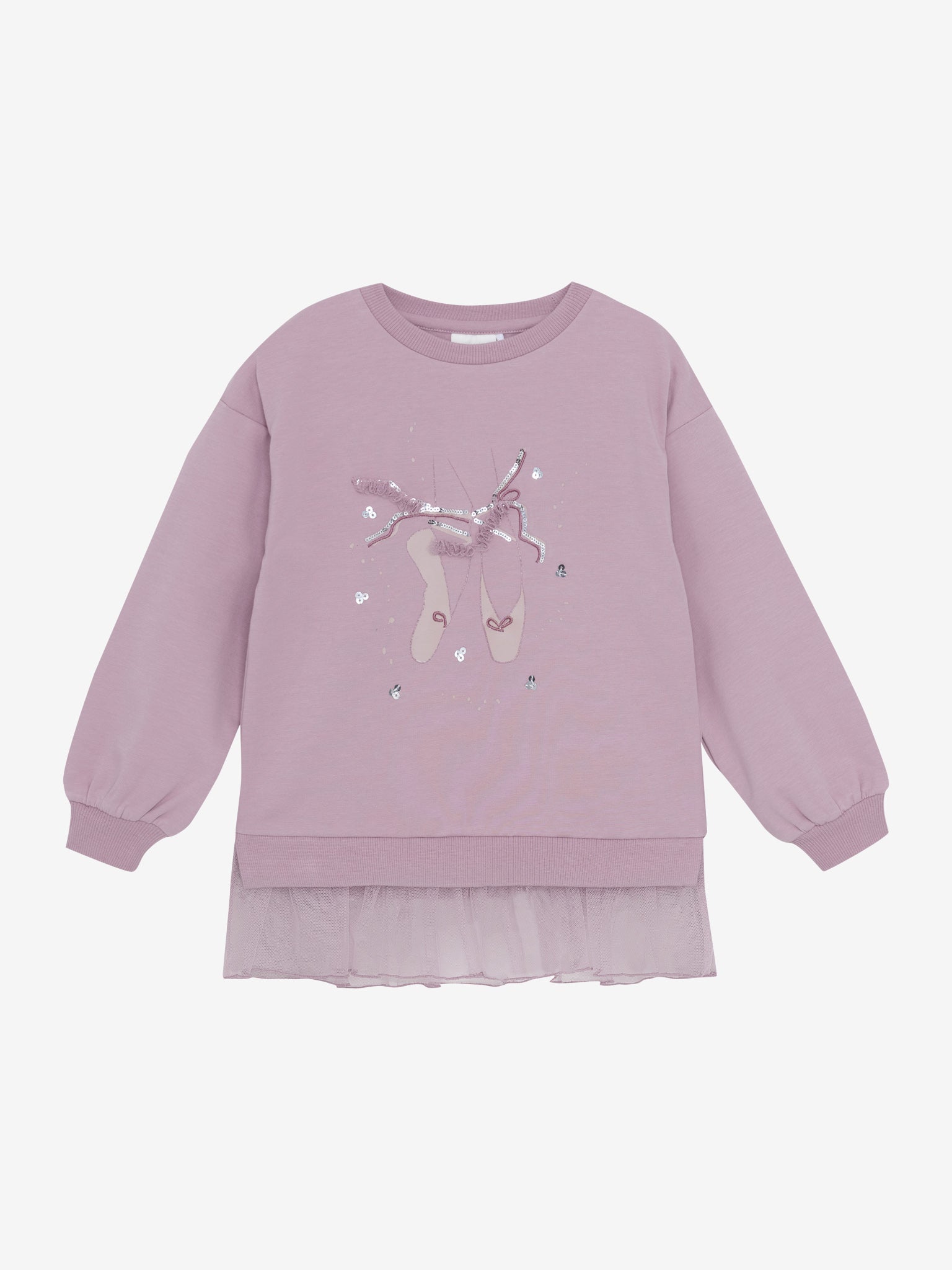 Sjarmerende genser fra Minymo. Genseren har et fint 3D-balletttrykk på magen, som gir den et ekstra preg. Den har en avslappet passform, samtidig som den har et skjørt som henger ned fra toppen for et elegant preg. Genseren har et komfortabelt snitt som sikrer en god passform. Laget av en økologisk bomullsblanding, føles genseren myk og behagelig mot huden.