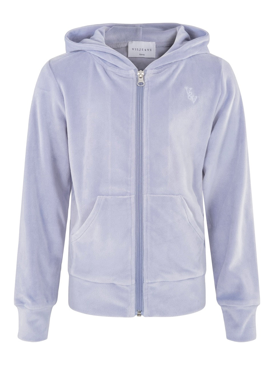 Myk og behagelig Hermine velourjakke fra Vilje & Ve. Utstyrt med en praktisk glidelås i front; hette og lommer; er denne jakken ideell for både avslapping og lek.