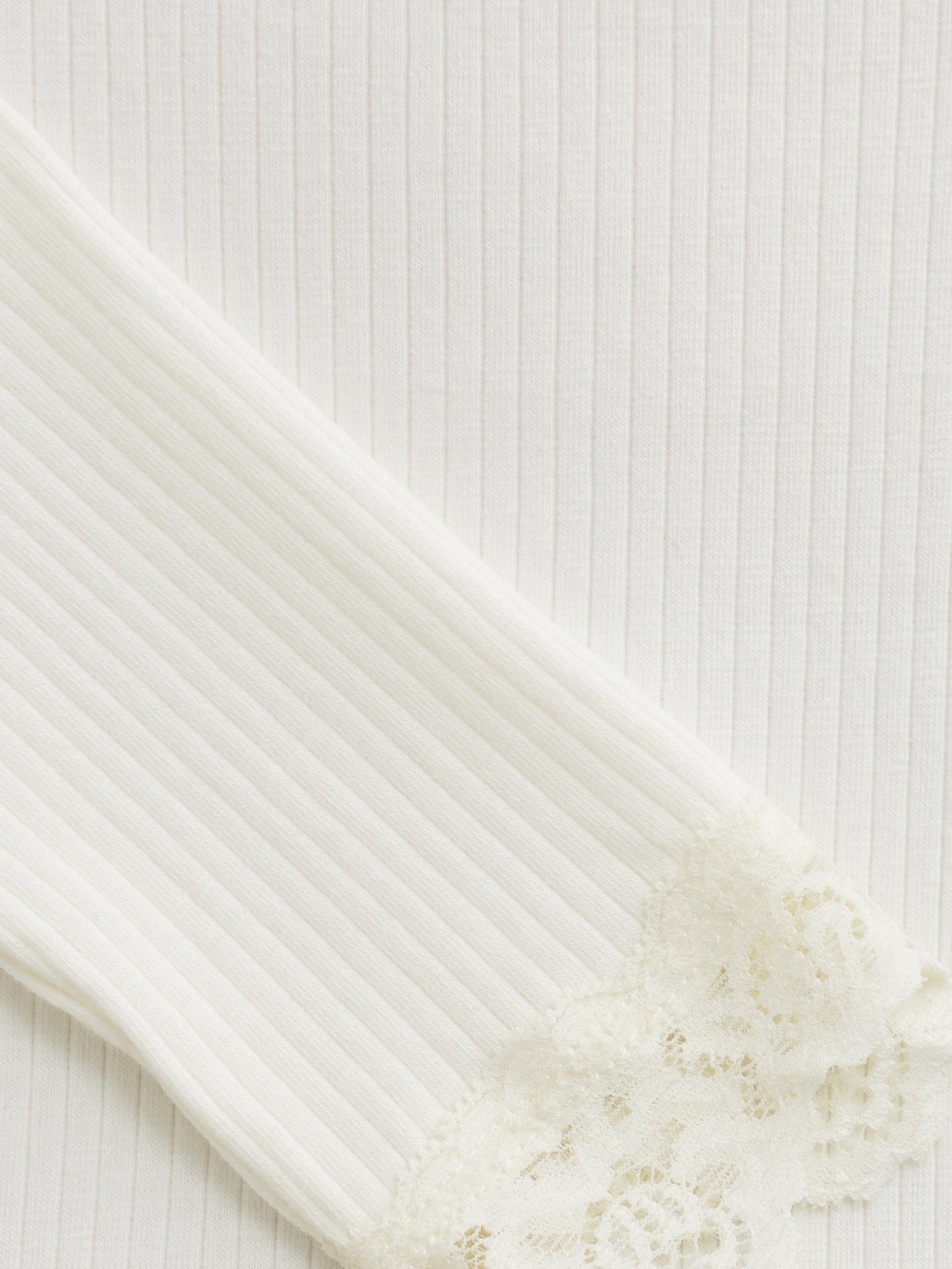 Fin, enkel bluse fra Creamie. Blusen har rund hals og bred volangkant ved ermeåpningen. Den er i en myk, ribbet kvalitet. Dette produktet inneholder TENCEL™-fibre. TENCEL™ er et varemerke for Lenzing AG.