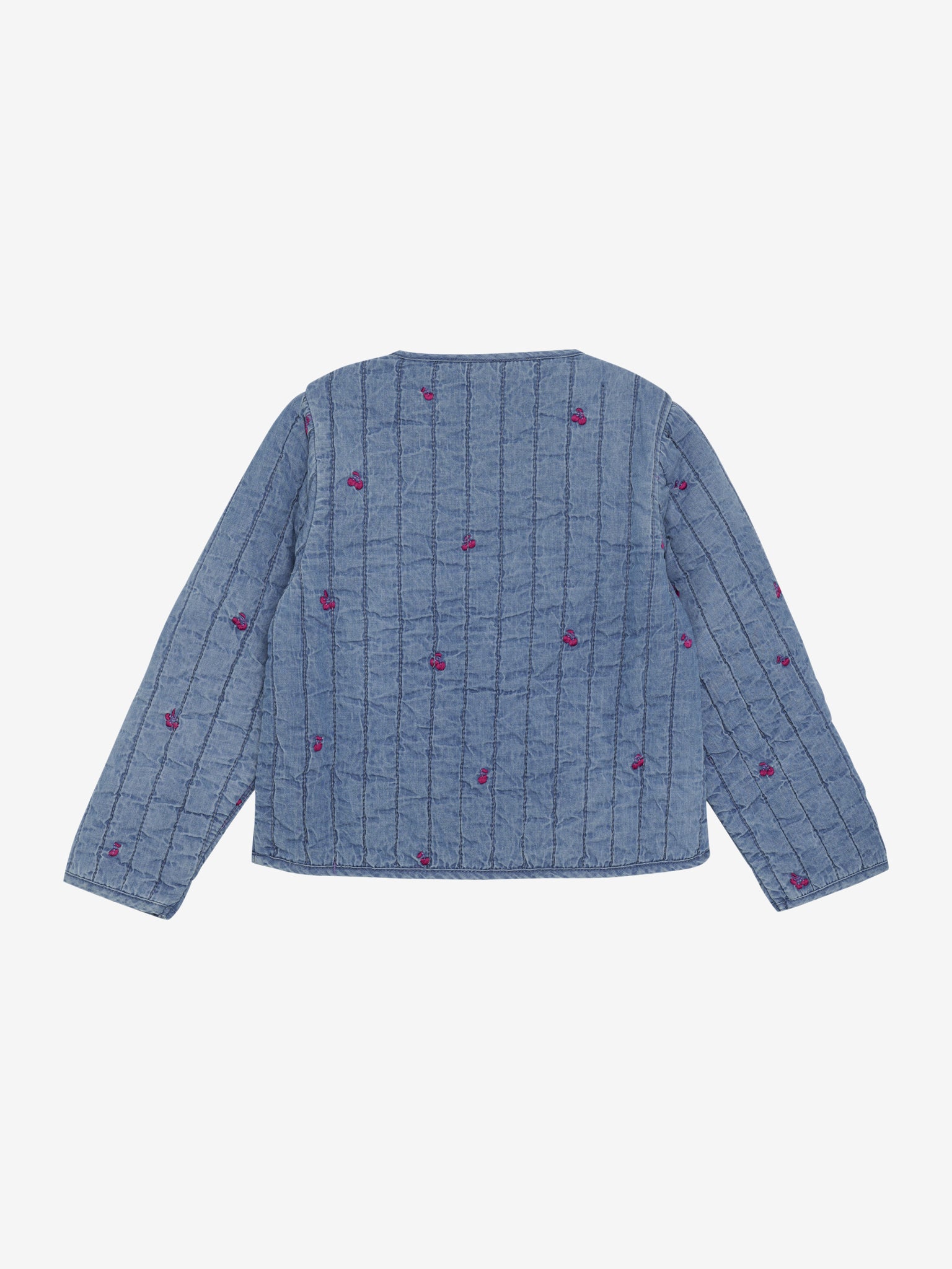 Vattert jakke med vakre broderte kirsebær og knappelukking foran.