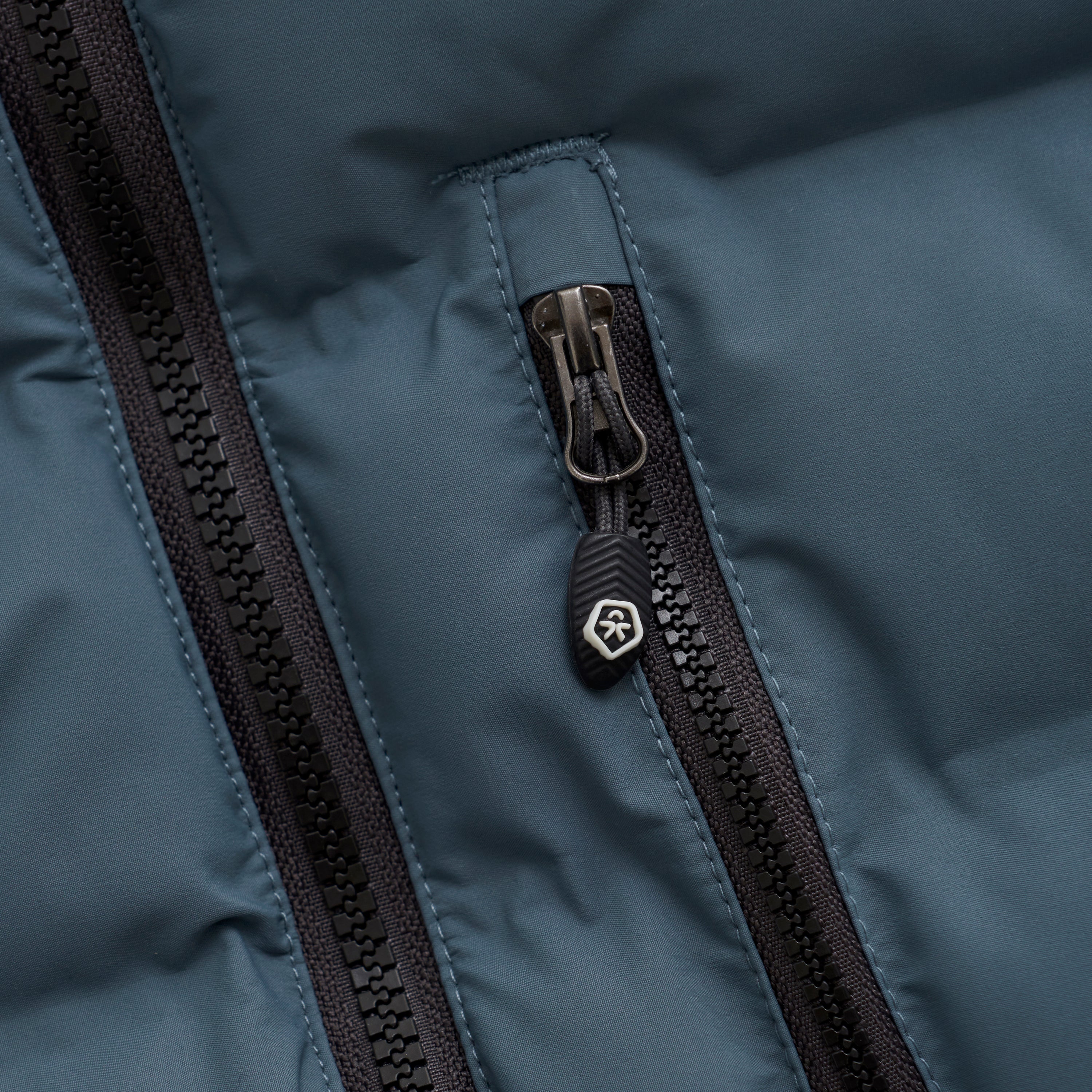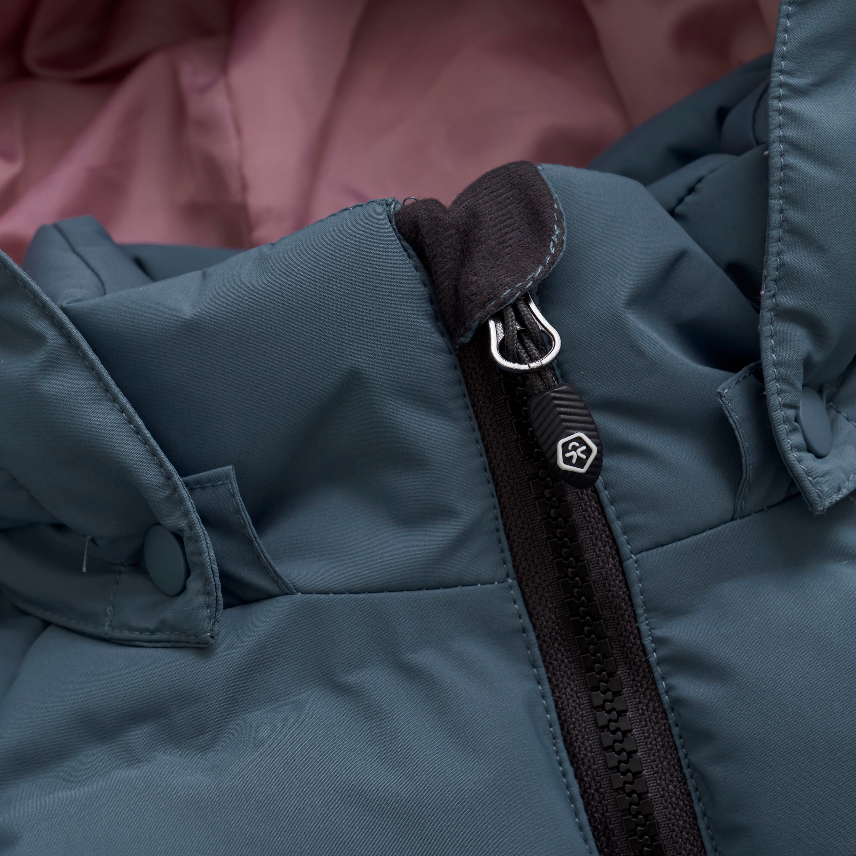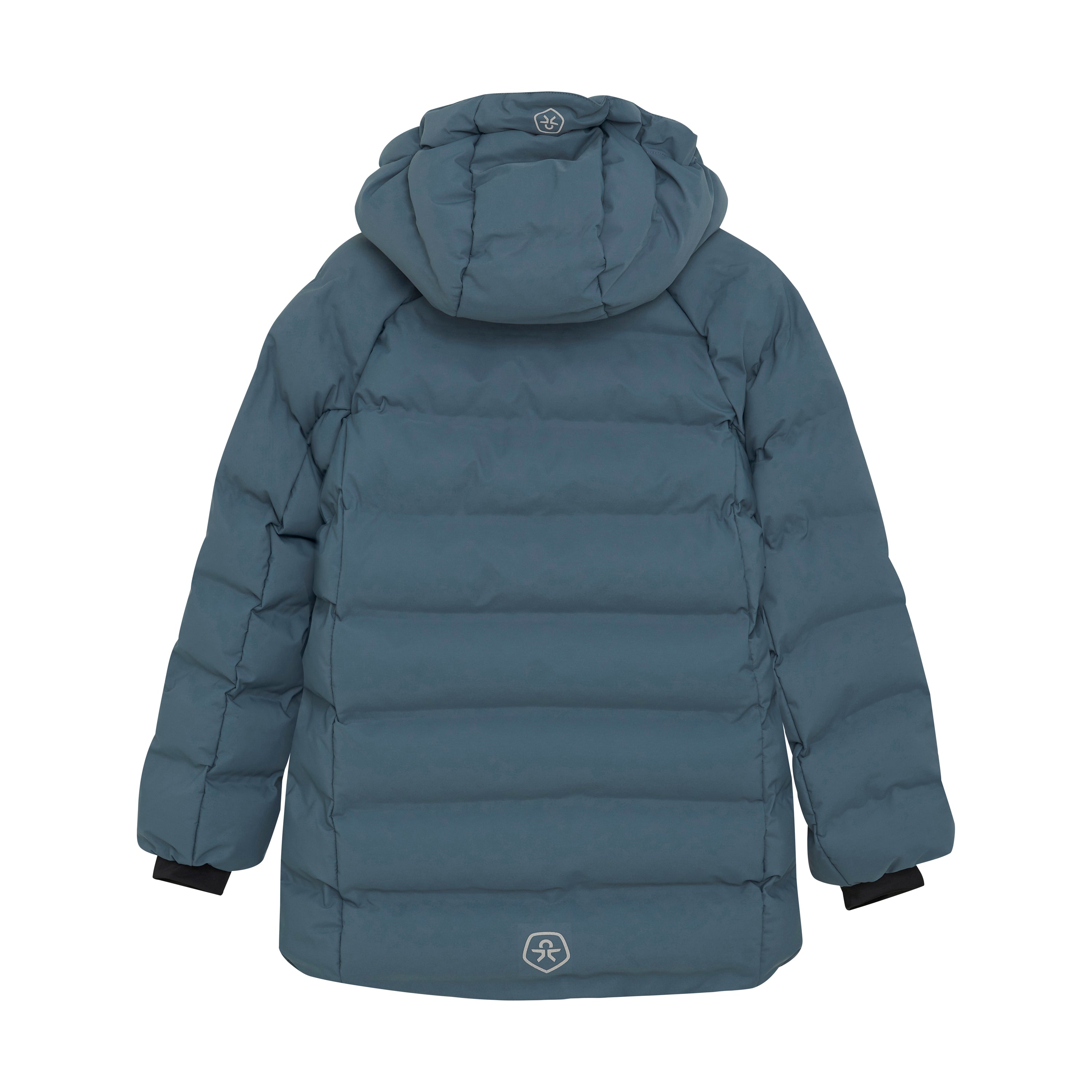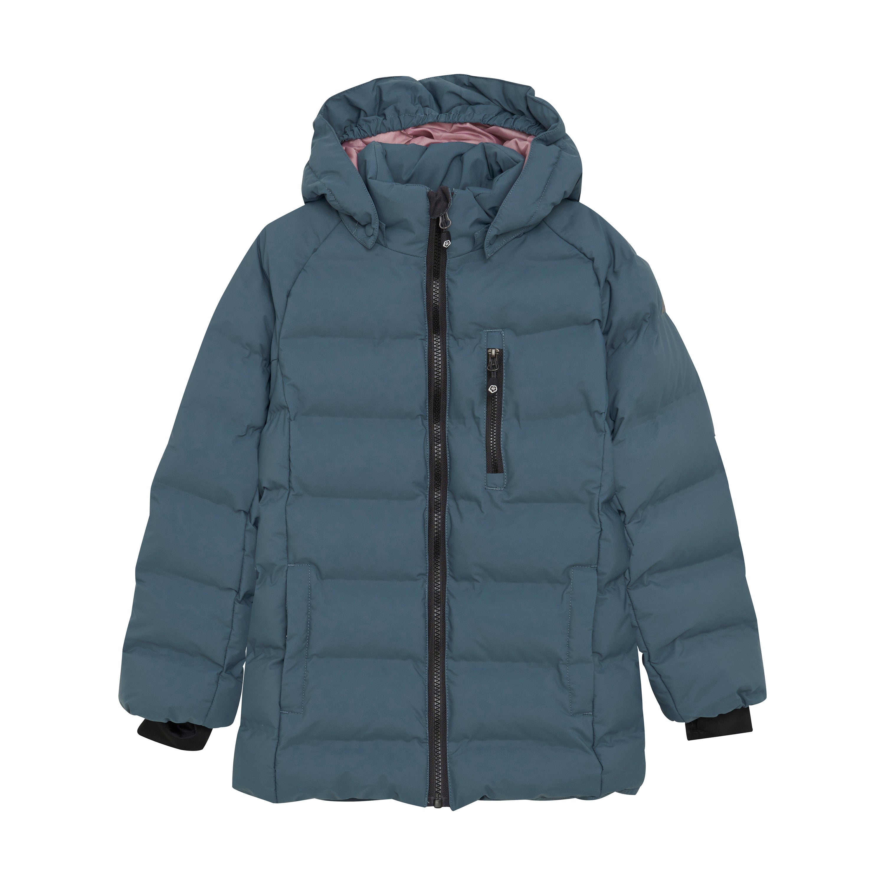 Varm, skreddersydd, vattert jakke i slitesterkt og delvis resirkulert materiale. Materialet er pustende, vindtett og vanntett, slik at barnet ditt kan holde seg ute i regn, snø og vind uten å bli kaldt og vått. Testet slitestyrke på 30 000 gnissinger, vannsøyletrykk på 10 000 mm og pusteevne på 3000 g. Jakken lukkes med kvalitetsglidelåser foran og på ytterlommene. Hakebeskytteren sørger for at glidelåsen føles myk under haken. Jakken har en avtakbar hette. Refleksdetaljer på ryggen og ermet for økt synlighet. Med innvendig navnelapp for enkel identifisering. Belagt med BIONIC FINISH® ECO. Sertifisert i henhold til GRS - Laget med mer enn 50 % resirkulert materiale.