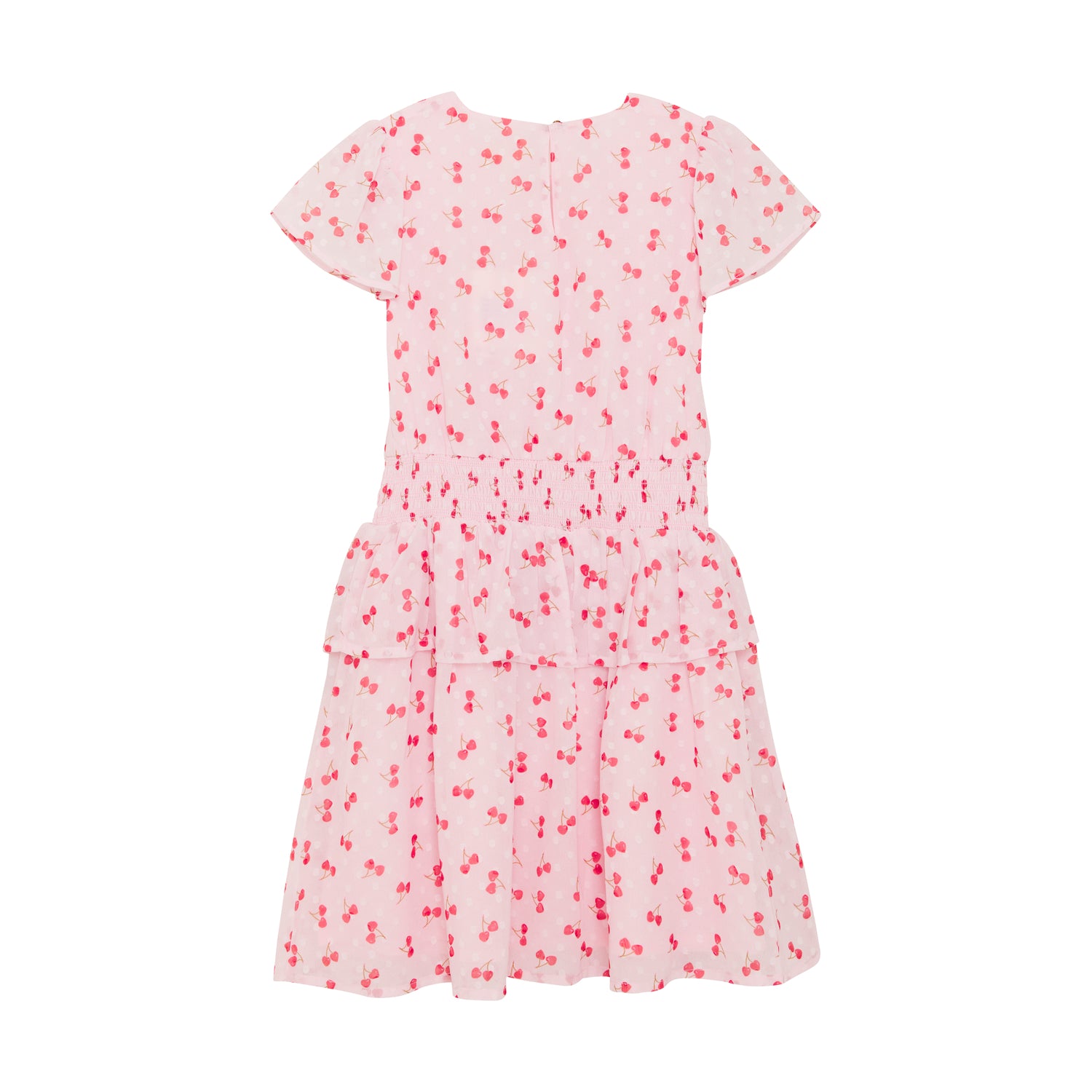 Creamie kjole med med korte ærmer. Denne kjole har smock effekt i livet og kan åpnes ved nakken den lett kommer over hodet.