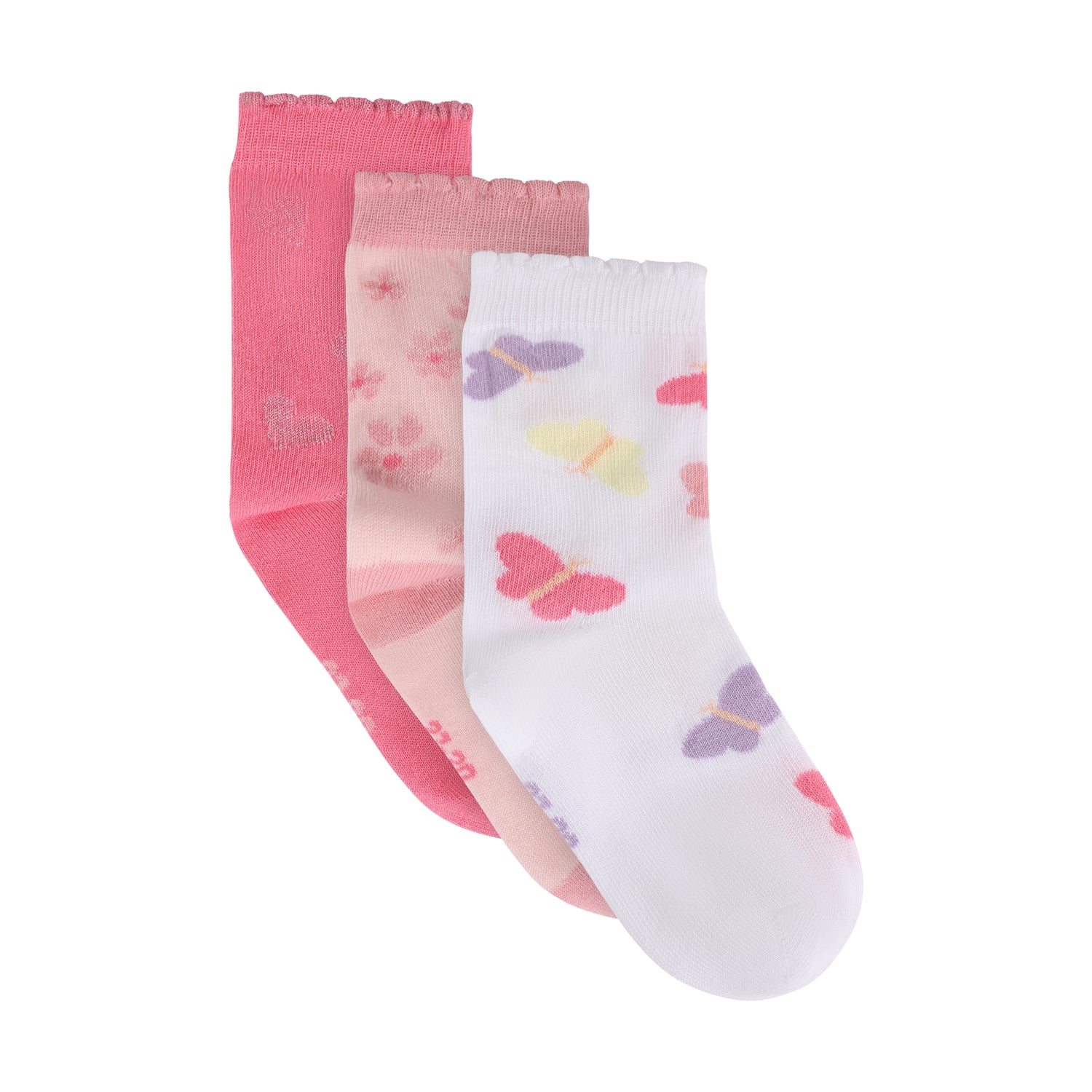 3-pakning sokker fra Minymo. Sokkene har heldekkende trykk. De er laget av en bomullsblanding.