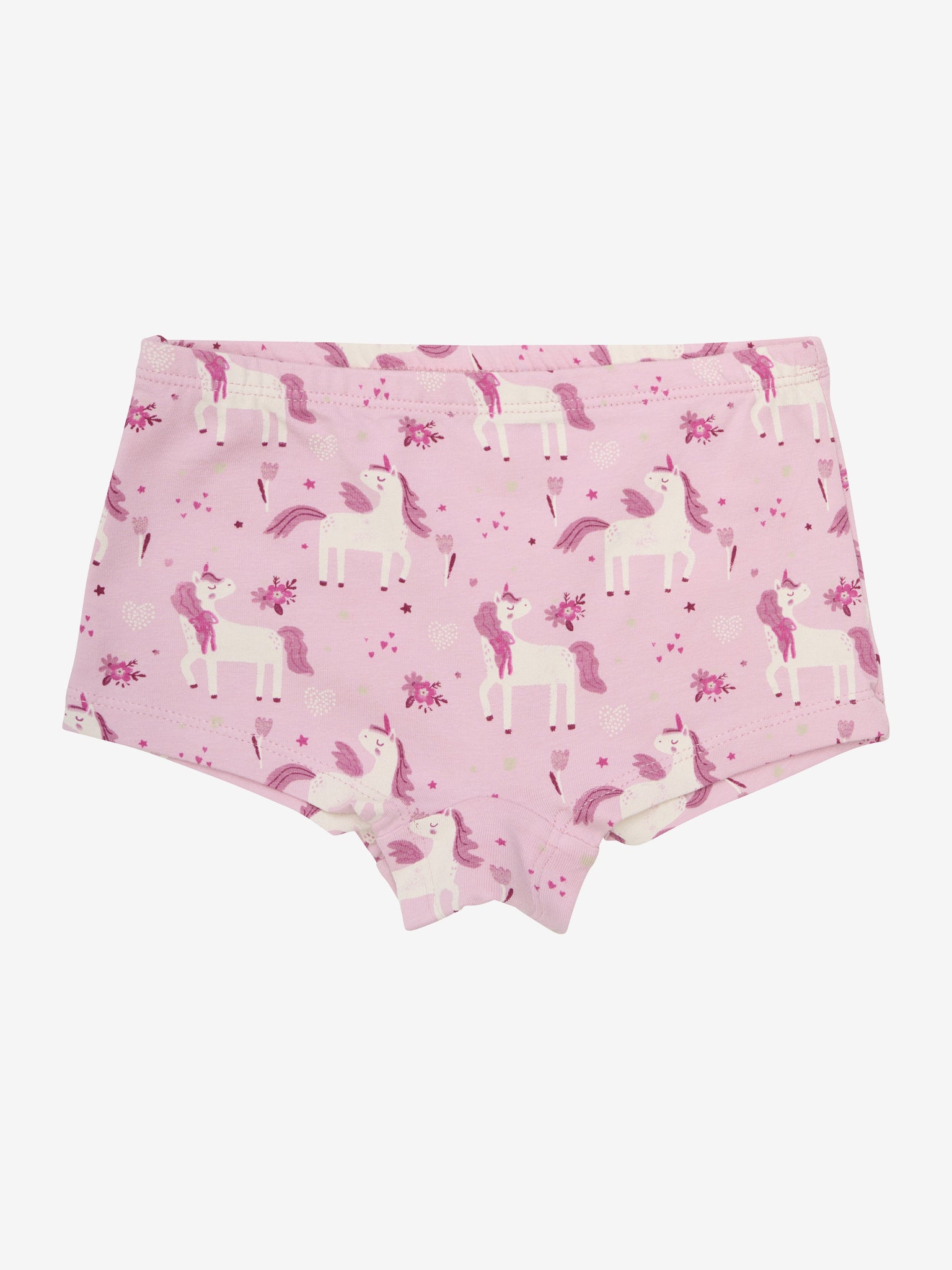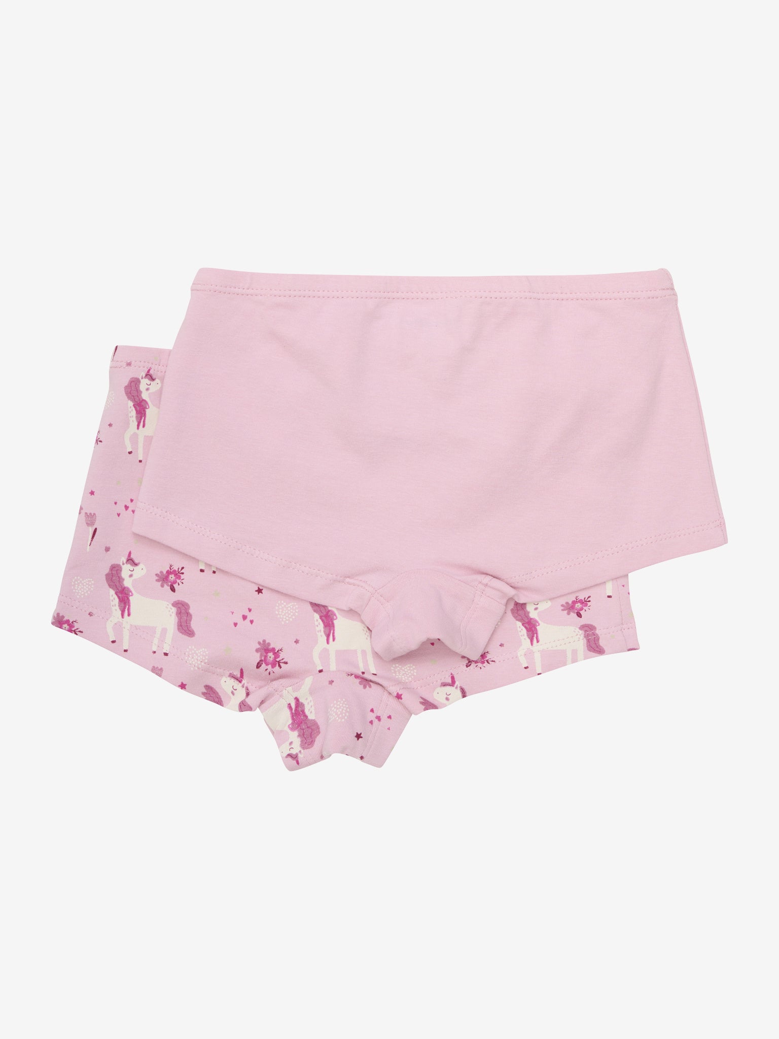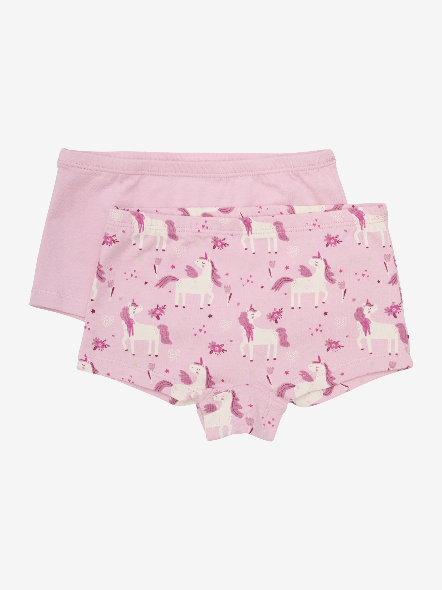 2-pakning truser, ett par med søtt enhjørningstrykk og det andre i ensfarget farge. Sertifisert i henhold til GOTS - økologisk CERES-0366