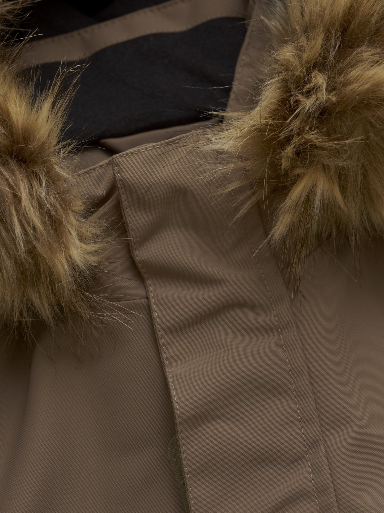 Varm kjeledress til barnet ditt i slitesterkt materiale. Materialet er pustende, vindtett og vanntett, slik at barnet ditt kan holde seg ute i regn, snø og vind uten å bli kaldt og vått. Testet slitestyrke på 60 000 gnissinger, vannsøyletrykk på 20 000 mm og pusteevne på 10 000 g. Kjeledressen har en kvalitetsglidelåslukking foran og på de ytre lommene foran. Hakebeskyttere sørger for at glidelåsen føles myk under haken. Kjeledressen har en avtakbar hette der fuskepelsen også er avtakbar. Justerbare gummistropper som kan settes under støvelen for å holde den på plass. Refleksdetaljer på ryggen og på ermet. Den har et navneskilt inni. Kjeledressen er laget av resirkulert materiale. Belagt med BIONIC FINISH® ECO. Sertifisert i henhold til GRS - Laget med mer enn 50 % resirkulert materiale.