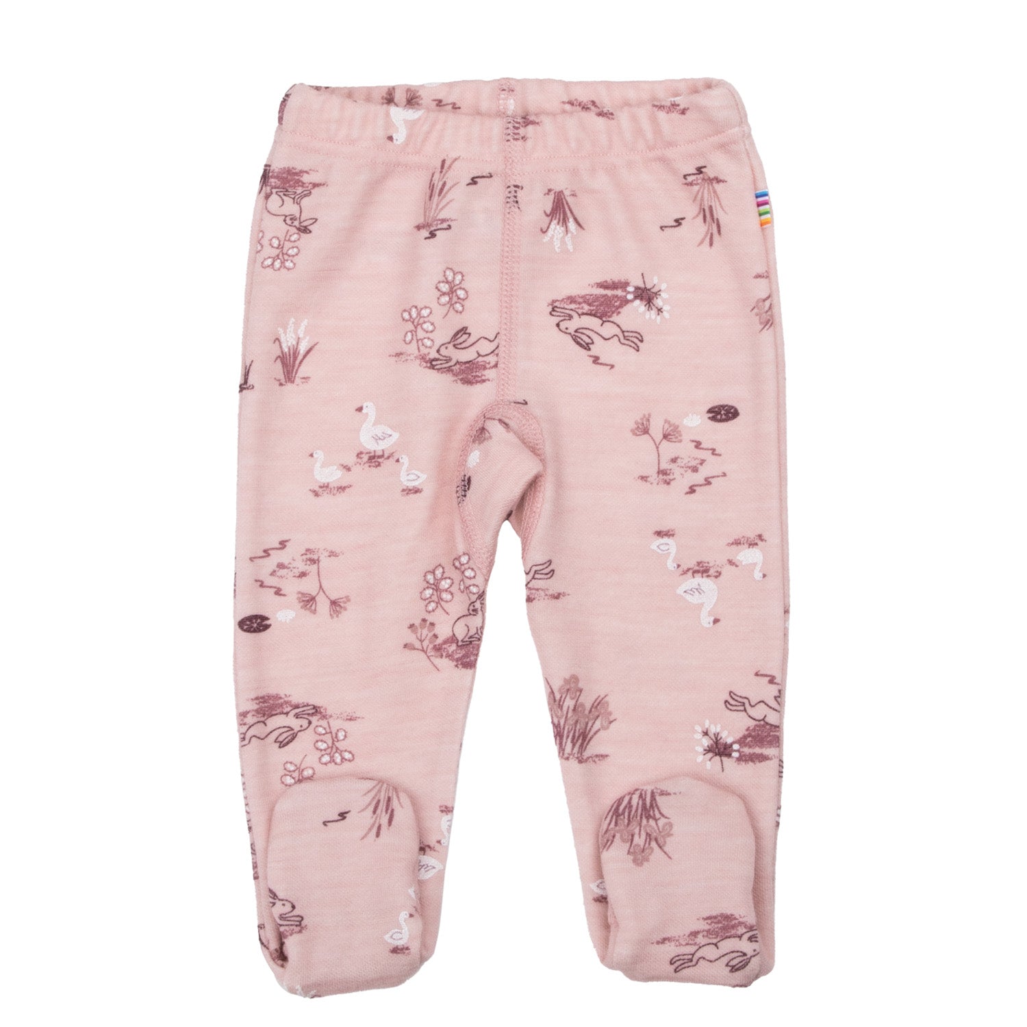Leggings med fot. God strikk i midjen. En deilig myk og elastisk kvalitet; der ullens unike egenskaper er på utsiden og myk økologisk bambus på innsiden. Spesielt egnet for svært sensitiv hud. Søtt trykk. Ullrik blanding og Oeko-tex 100-merket.