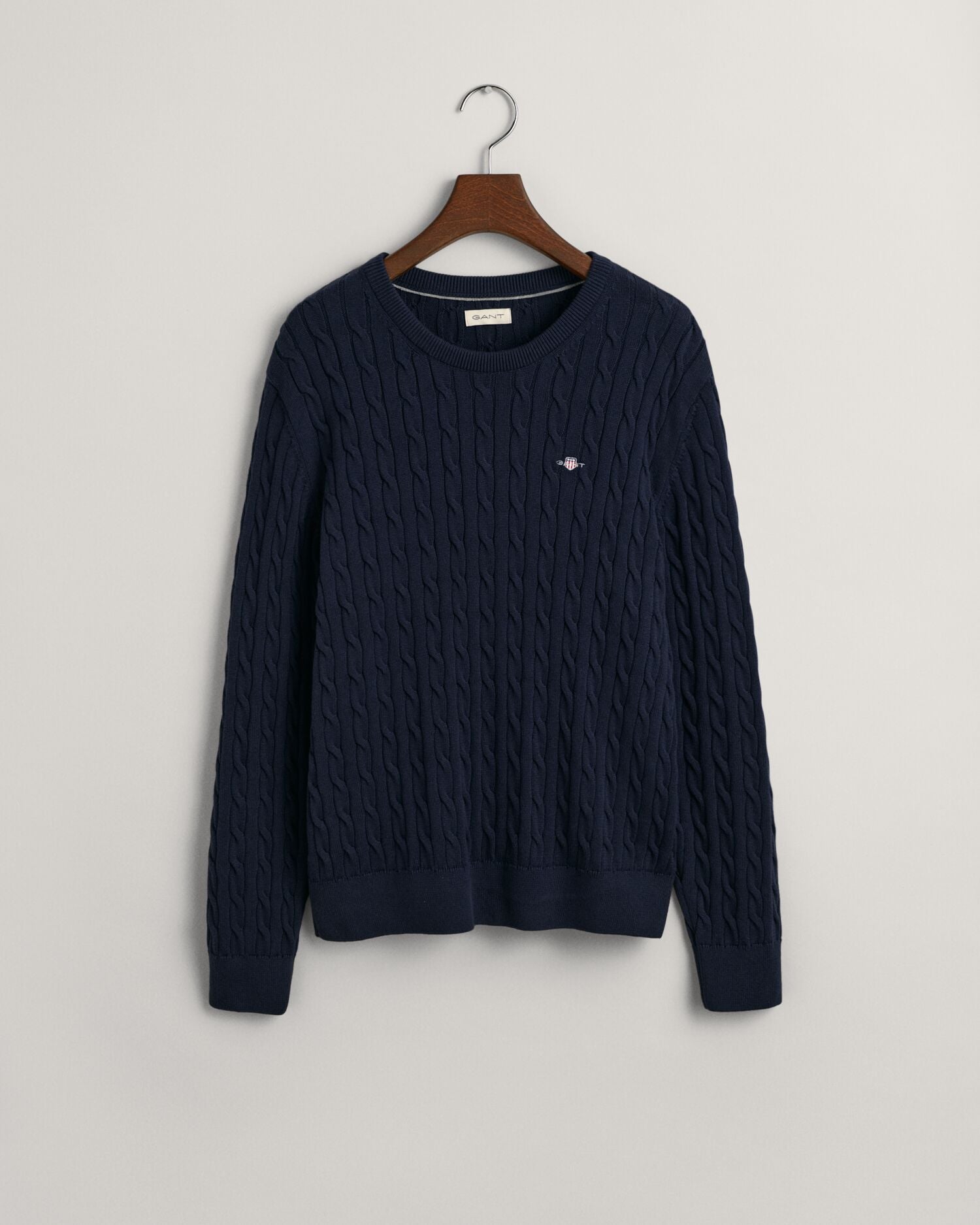 Denne kabelstrikkede genseren er laget av myk, pustende bomull og den er et essensiell plagg i enhver preppy garderobe. Den klassiske genseren er sofistikert og kan enkelt pyntes opp eller ned, avhengig av anledningen.