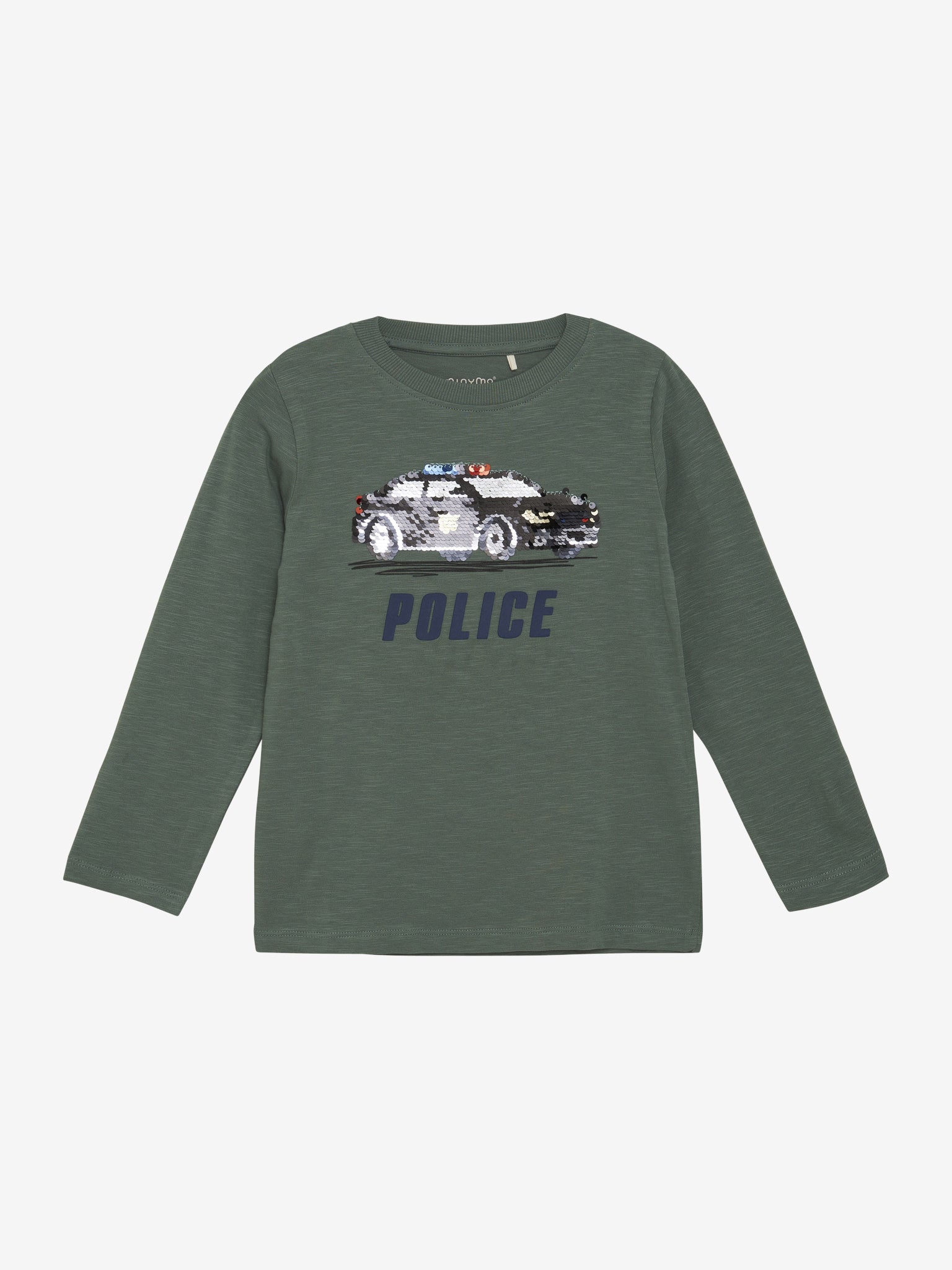 Langermet T-skjorte med politibilmotiv på brystet. Rund hals og mykt bomullsmateriale, perfekt for lek og hverdagsbruk.