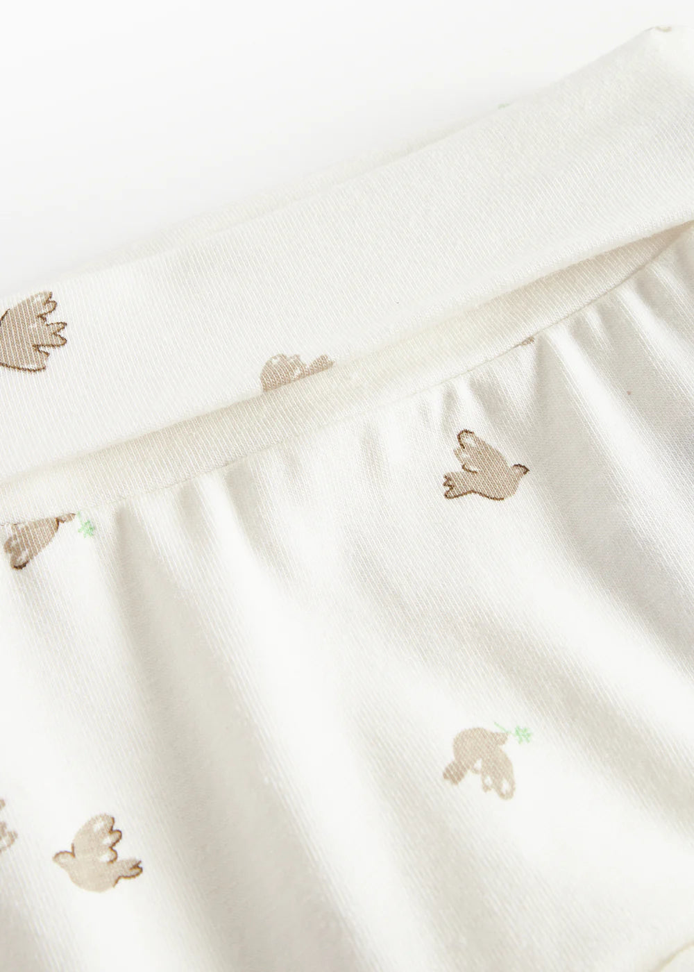 Komfortable bukser for nyfødte. Buksene har et fint trykk og er myke, tøyelige og behagelige å ha på seg.