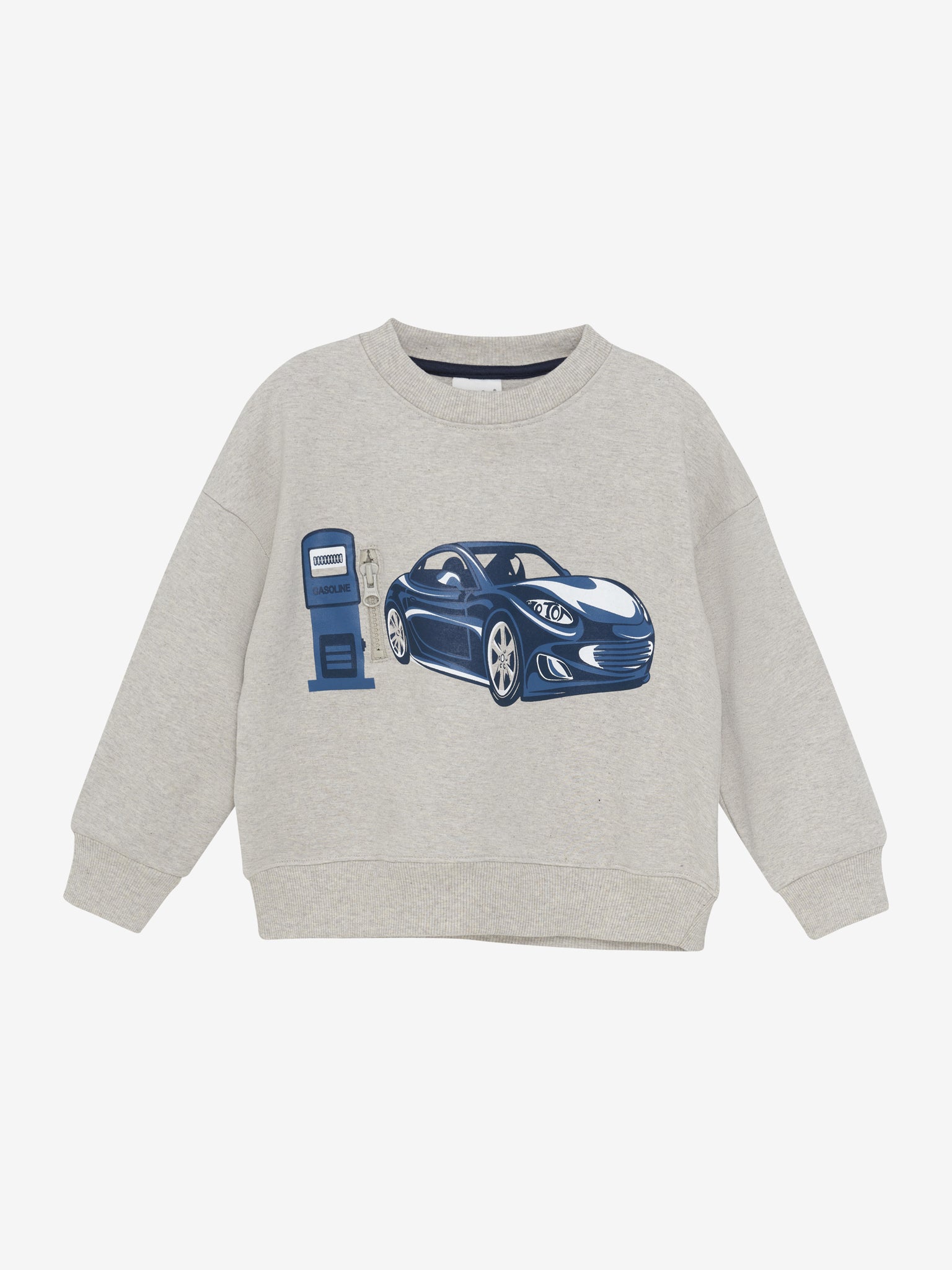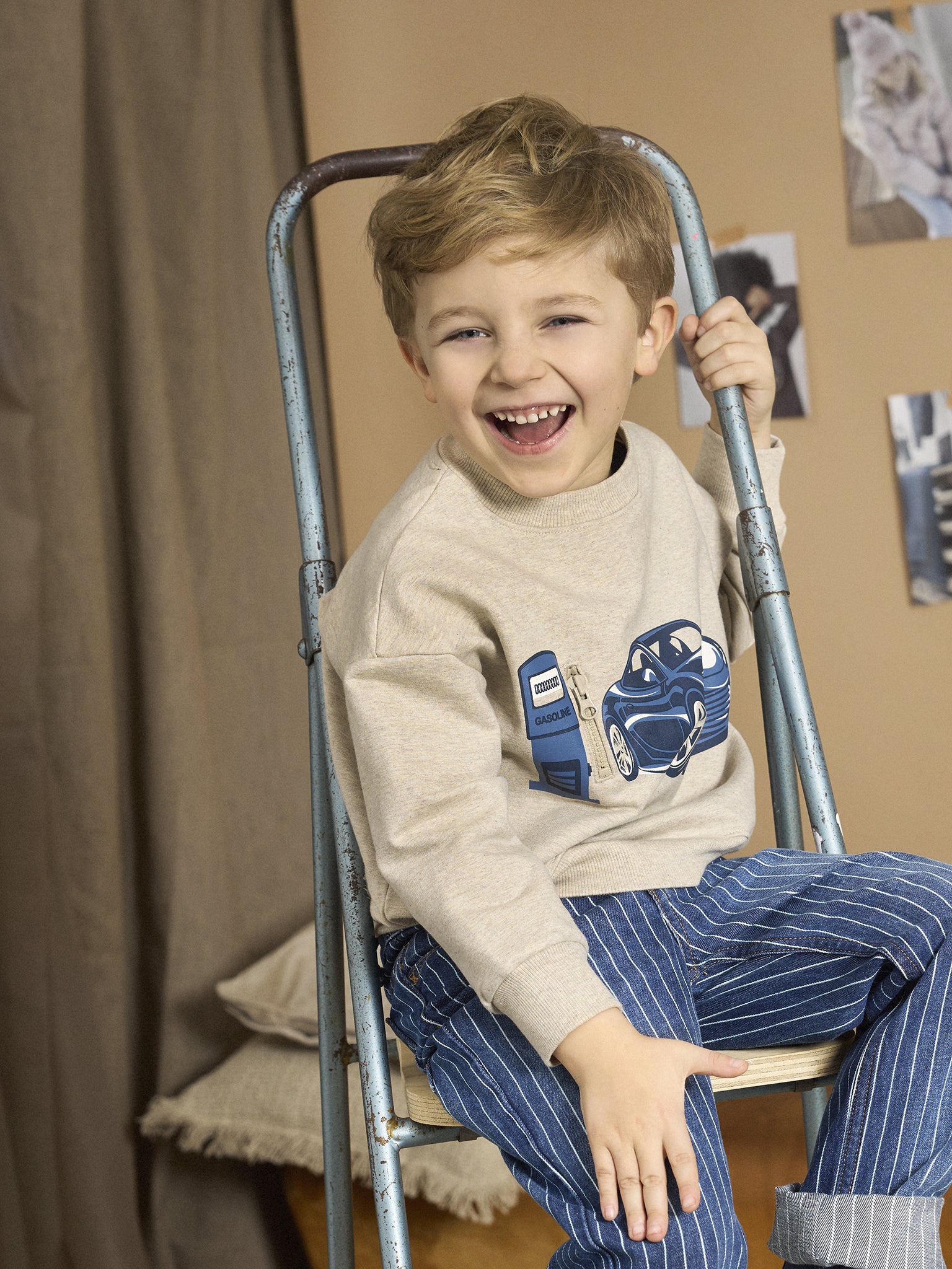 Kul genser fra Minymo. Genseren er laget av en bomullsblanding, noe som sikrer et mykt materiale mot huden. Den har et kult trykk på magen, som gir en ekstra detalj til det stilige utseendet. Sertifisert i henhold til OEKO-TEX® STANDARD 100 Sert. nr. 2276-364 DTI