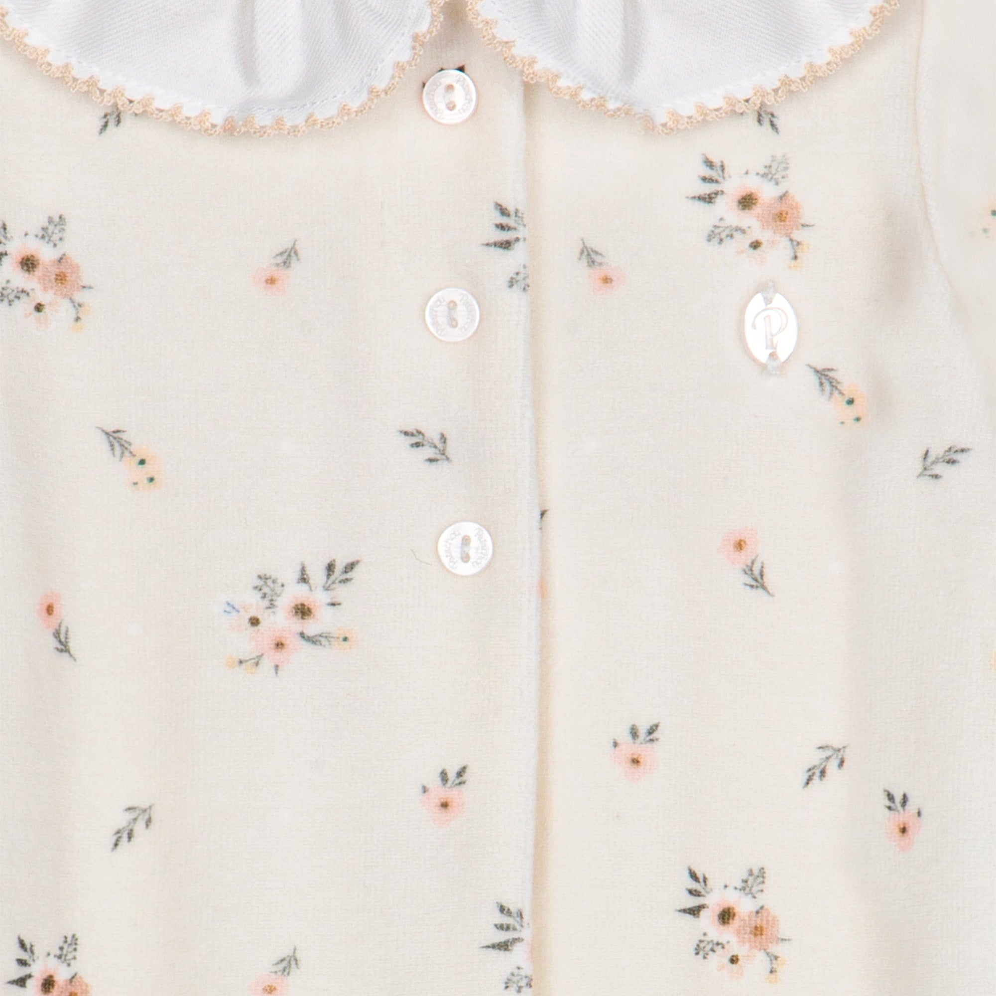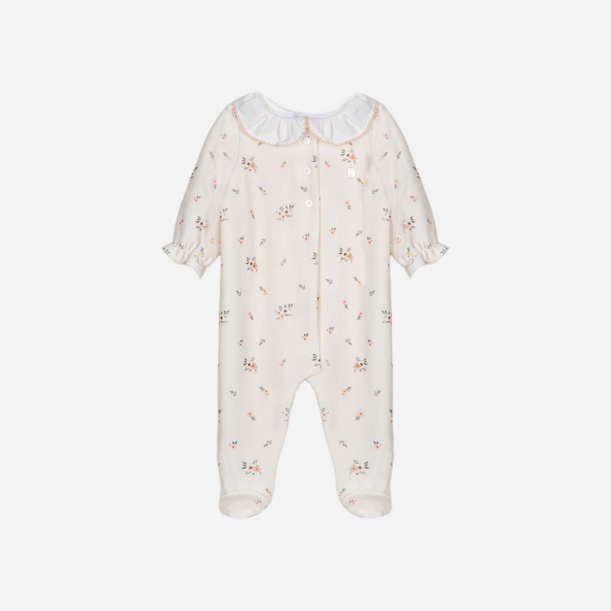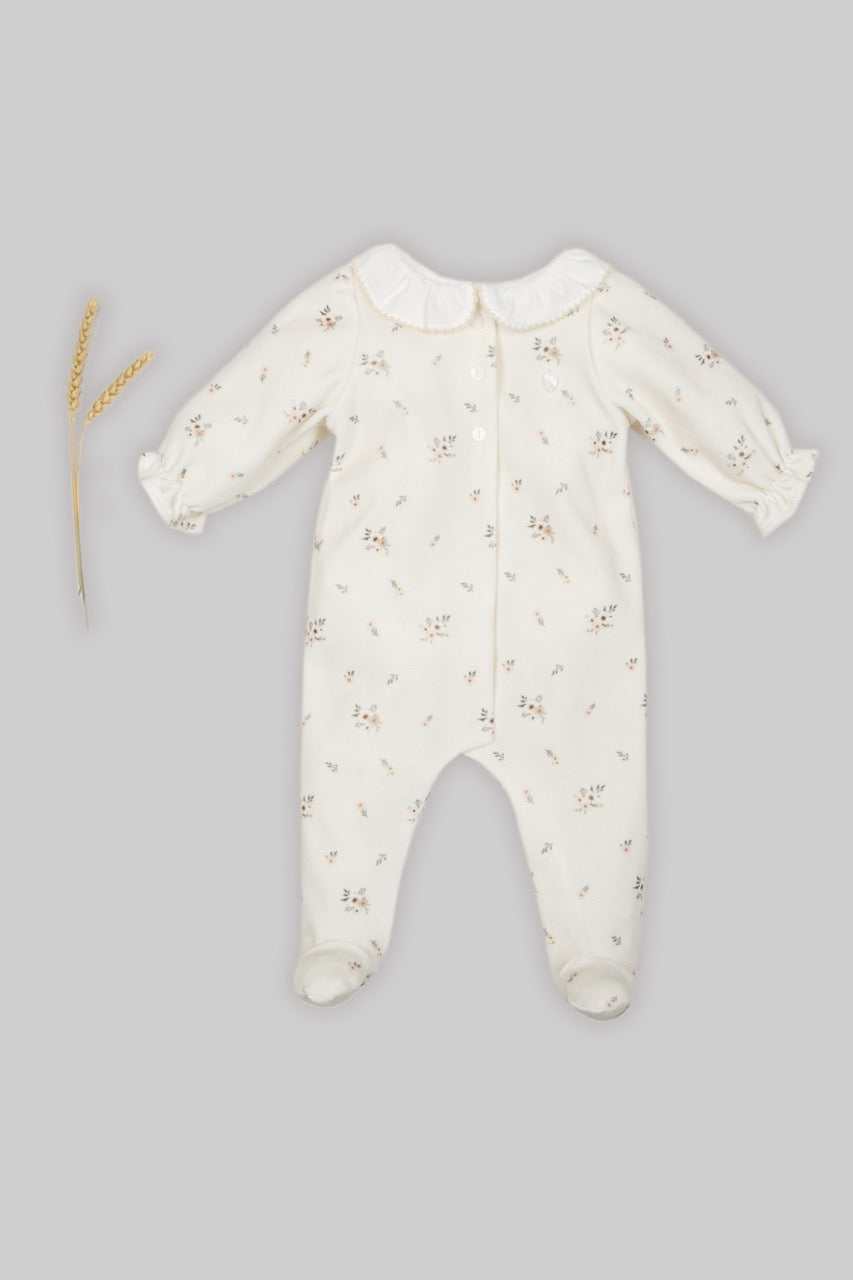 Helt fantastisk nydelig heldrakt fra Patachou, med en nydelig bunnfarge og søtt blomsterprint, avrundet krage og deilig velour - en skikkelig fin gave!
