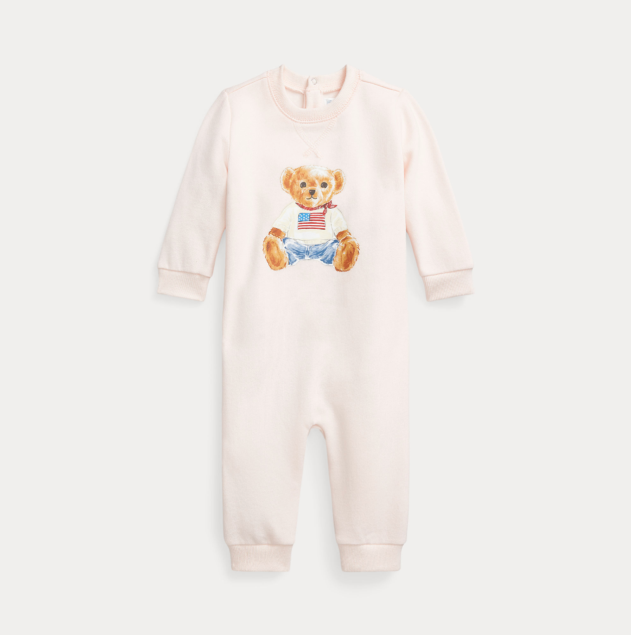 Supersøt overall fra Polo, Ralph Lauren med bamse på brystet og knepping bak.