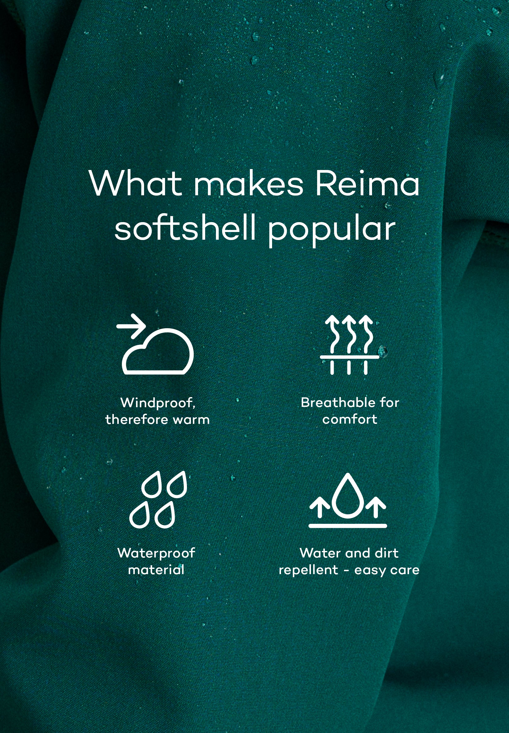 Alkava-dressen i softshell-materiale sørger for at den lille har det tørt og godt. Det svært lette; vanntette 3-lags materialet med robuste forsterkninger sørger for at leken kan vare lenge. Ettersom den er vindtett på utsiden og glatt på innsiden; er dressen fin å bruke også på mildværsdager. Materialet er pustende; slik at barnet ikke får det klamt i stoffet; og har en smussavvisende finish som gjør det enkelt å holde rent. Den teipede baksømmen beskytter effektivt mot fuktighet; mens den lange glidelåsen gjør dressen rask å ta på og av. Den avtakbare hetten; strikken i livet samt elastikken i ermene og buksebeina gjør dette til en dress som barna ikke vokser så raskt ut av. De nøye gjennomtenkte refleksdetaljene som sørger for at barnet er enkelt å få øye på også når det ikke er så lyst ute; er typiske for Reima-yttertøy. Dette er et bluesign®-produkt som oppfyller de strenge sikkerhets- og miljøkravene i bluesign®-kriteriene: Laget av bluesign®-godkjente materialer og tilbehør og produsert på en ressursbesparende måte med minimal påvirkning på mennesker og miljø.