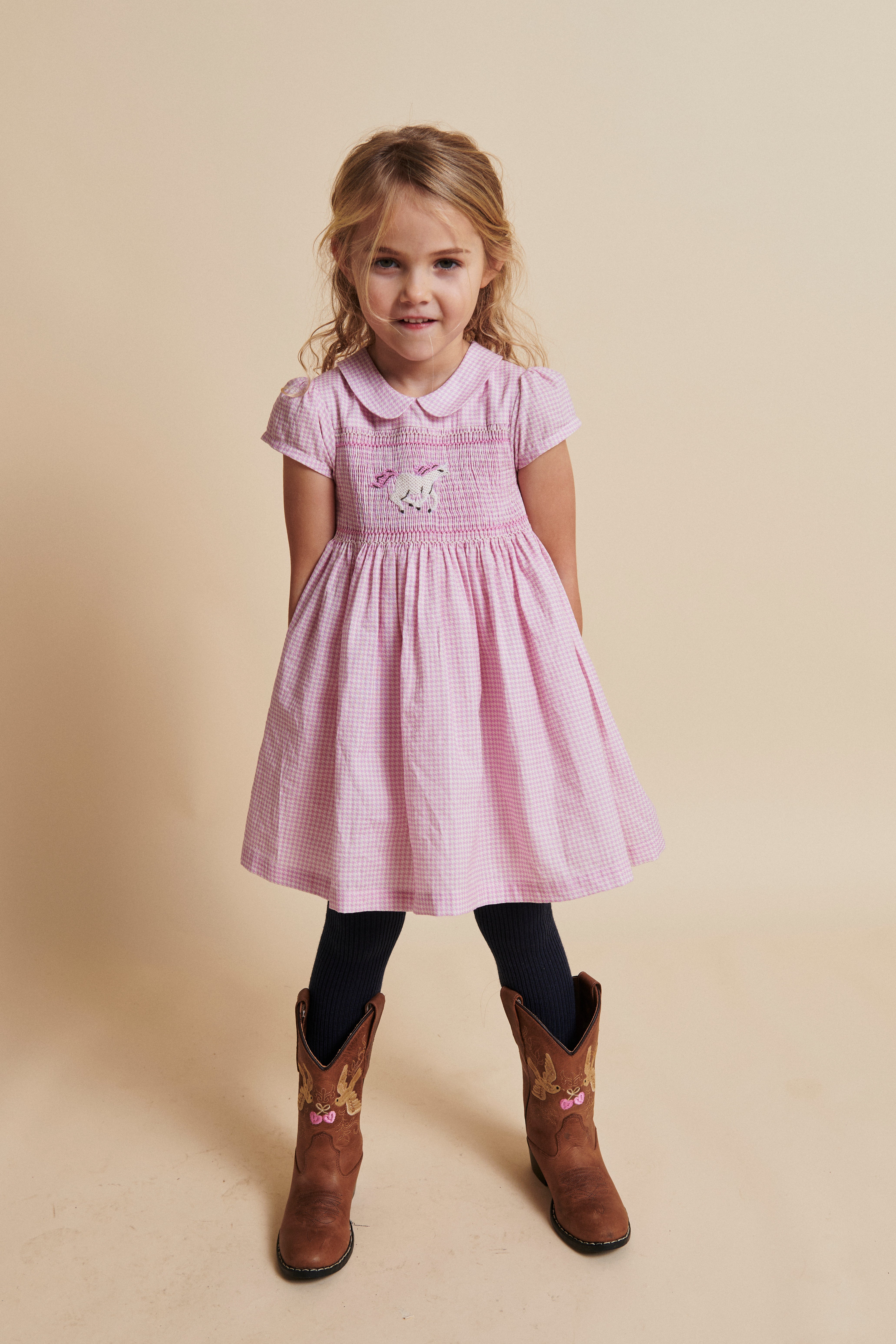 Copenhagen Houndstooth Kjole Med Håndlaget Enhjørning