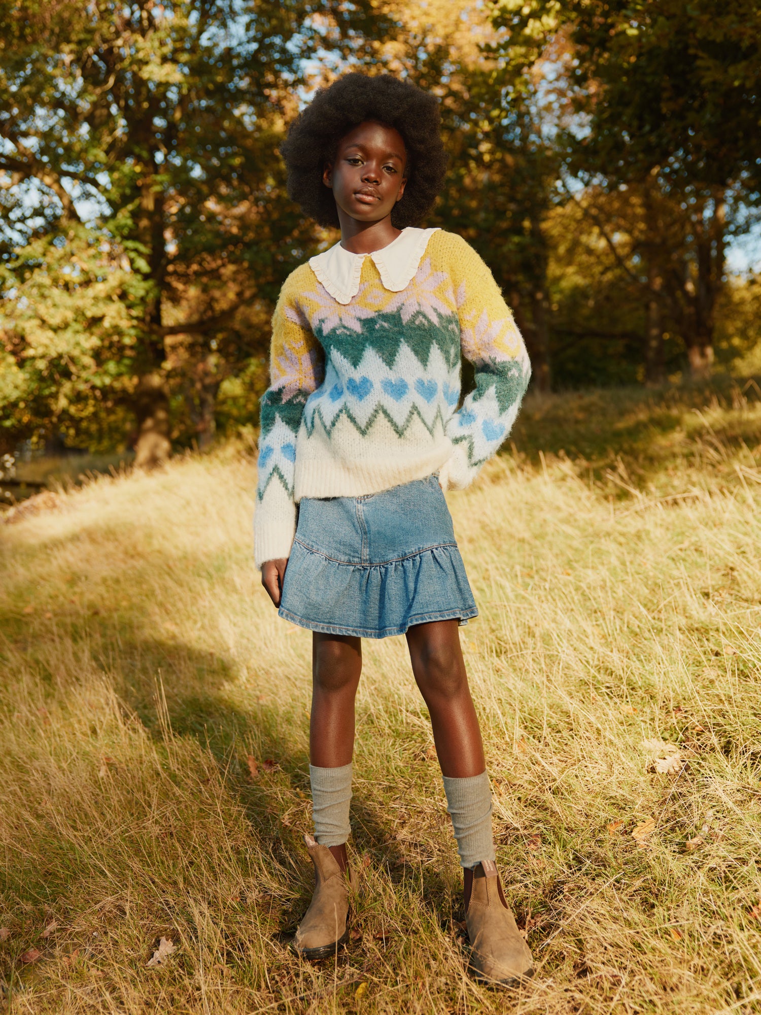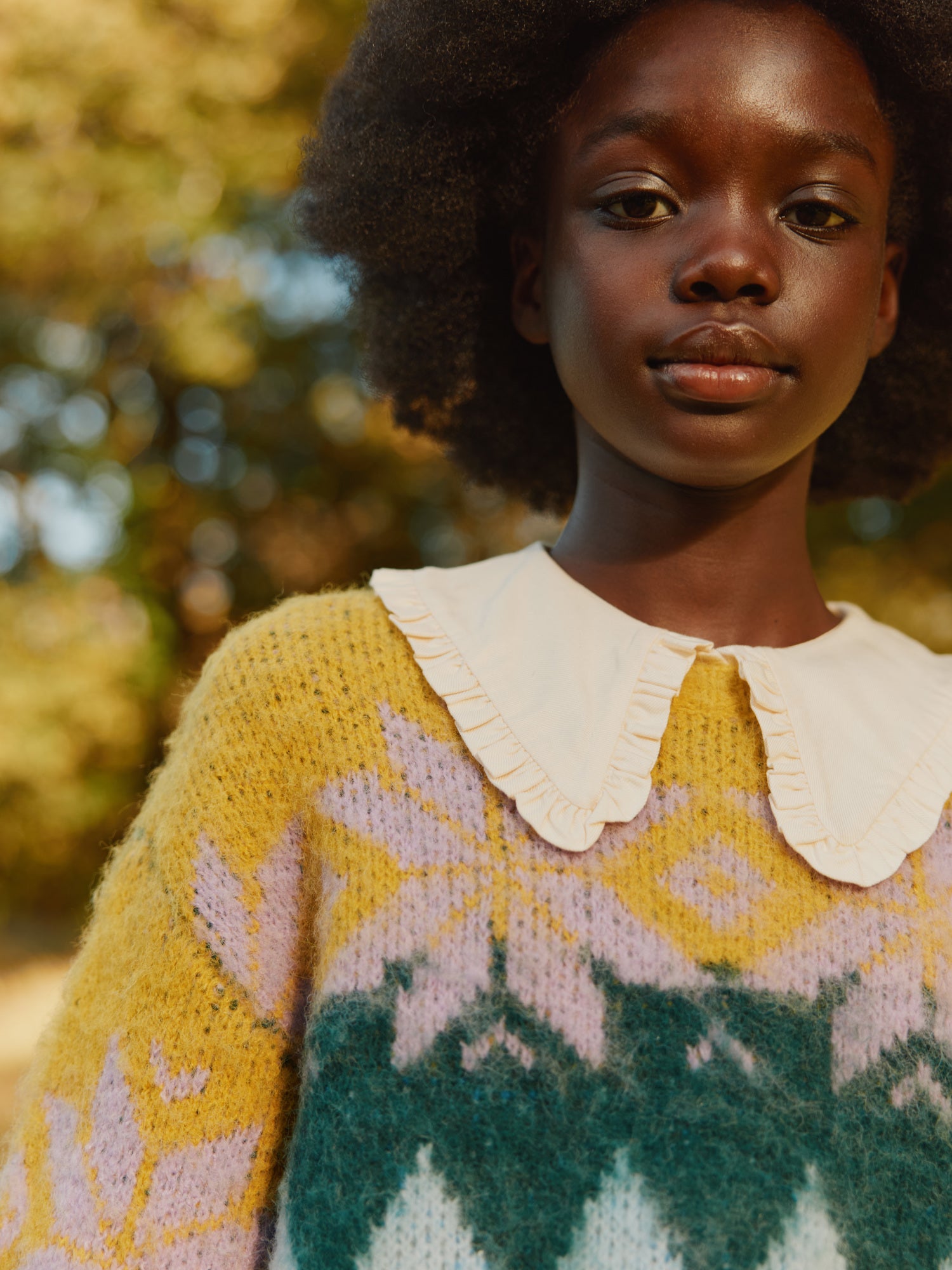 Superfin og myk ullmix-genser fra Molo med pent mønster, behagelige farger og pent snitt! En skikkelig ålreit hverdagsgenser til kalde dager.