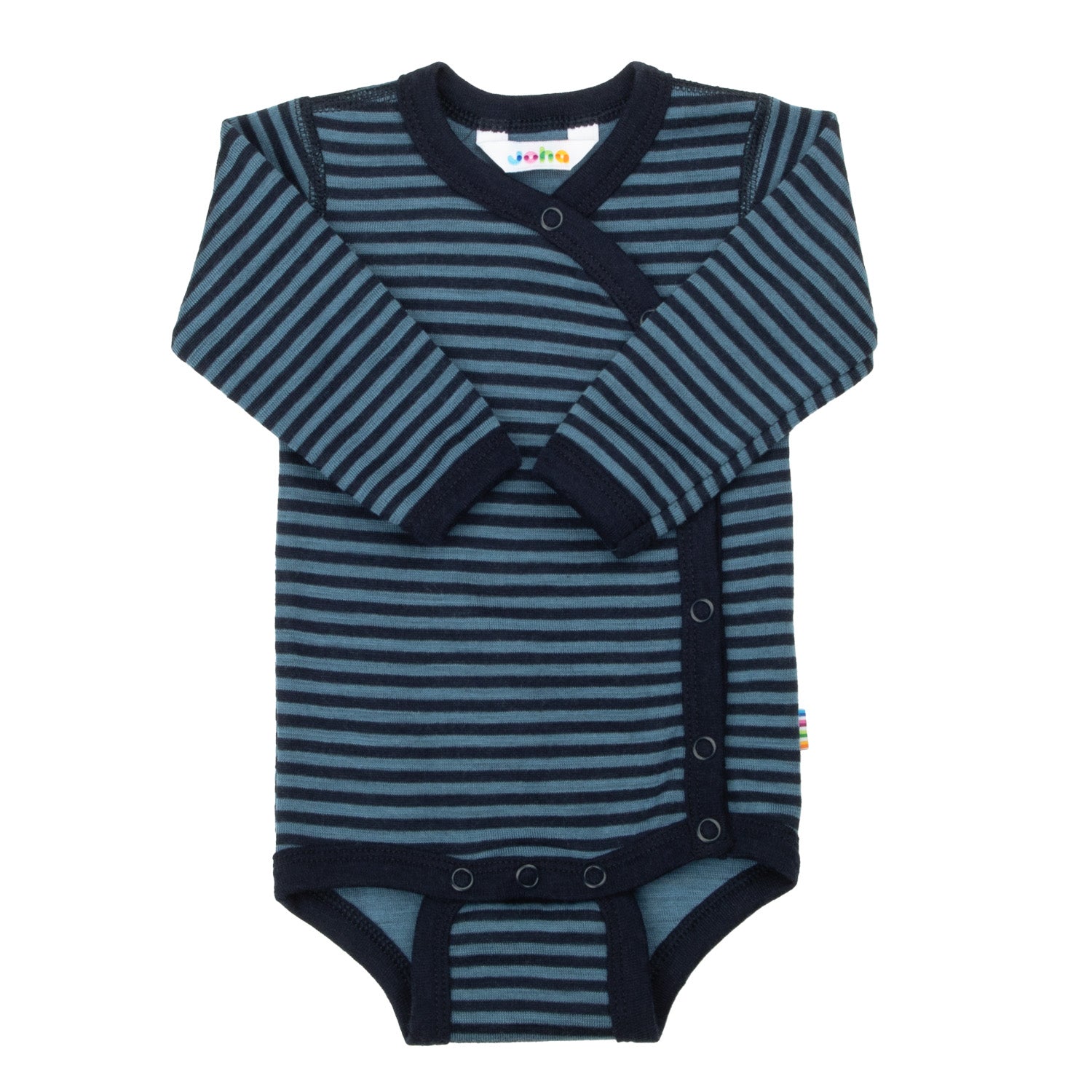 Body med sidelukking for de minste. Trykknapper diagonalt over magen og mellom bena for enklere påkledning. En fin, glatt og elastisk ullkvalitet som er herlig myk og behagelig å ha på seg. Stoff med fine, smale striper og kontrastfargede kanter. Ullrik blanding og Oeko-tex 100-merket.